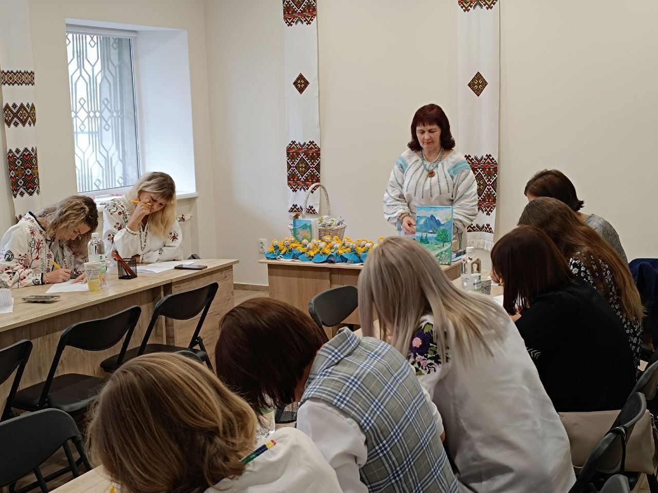 Допомагала присутнім заслужена журналістка України, письменниця Марія Баліцька. Вона розповіла, що пройшла навчання і отримала сертифікат, щоб фахово проводити такі заходи, як казкотерапія.