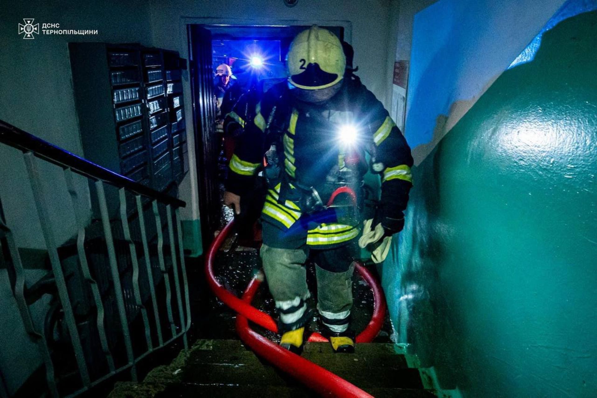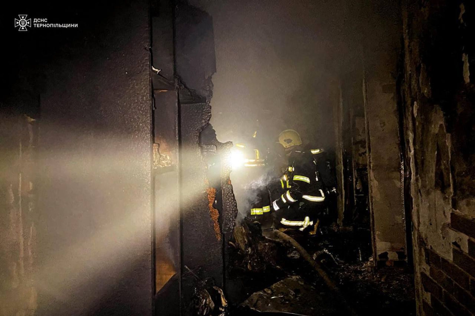 Вогонь охопив кілька поверхів будинку у Тернополі після влучання безпілотника