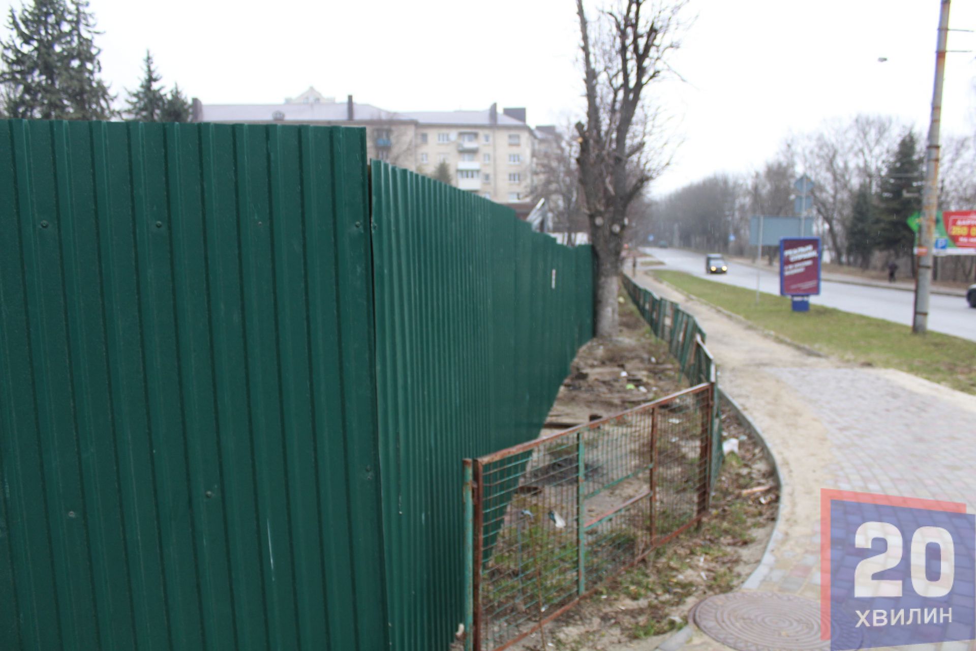 А в кінці січня частину скверу обгородили і підрили дерева.