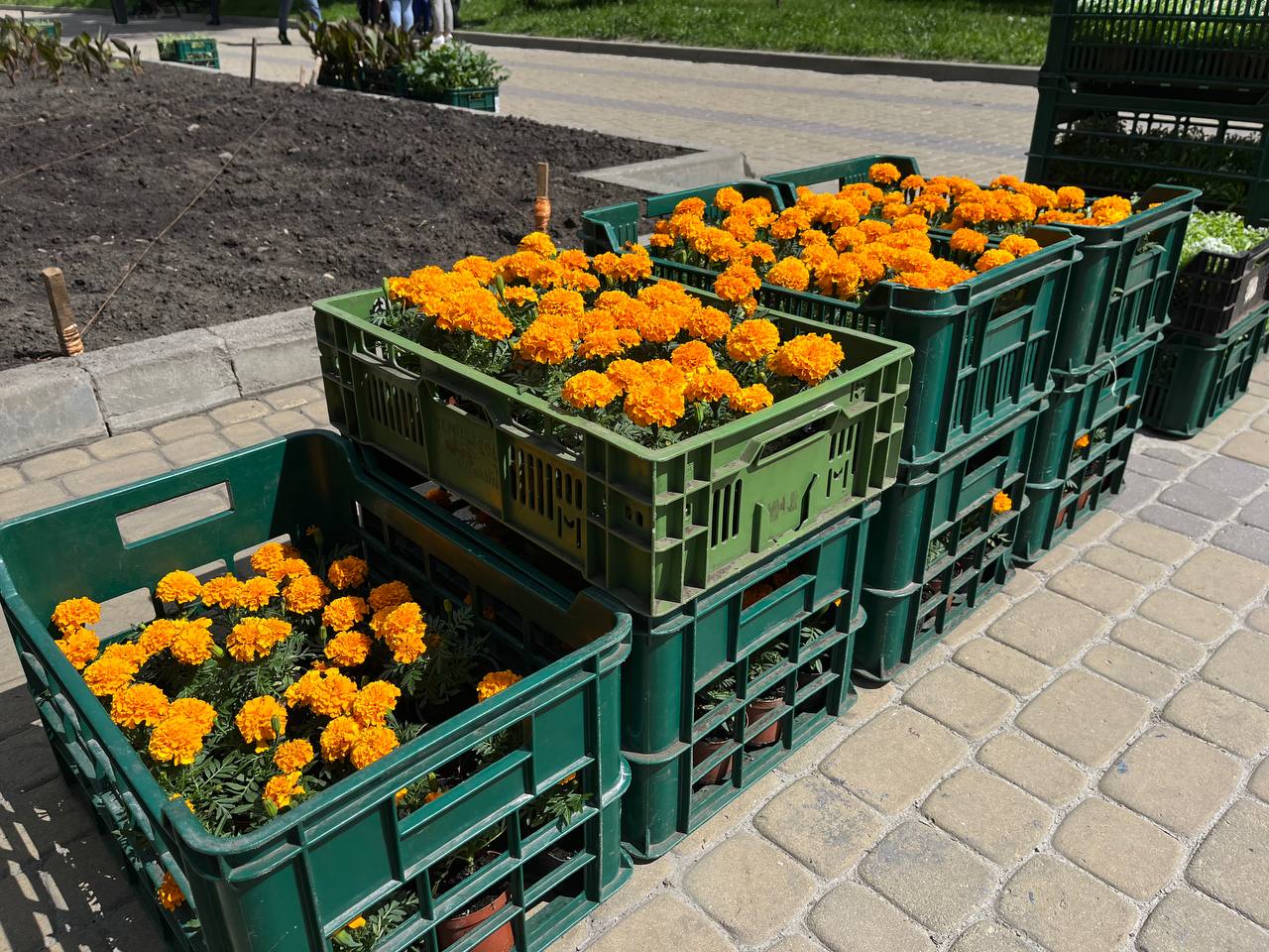На годиннику 11.30, а на центральній алеї бульвару Тараса Шевченка вже розставили десятки ящиків з розсадою квітів. Чорнобривці, канни, алісум – лише частина рослин, яку підготували для висадження.