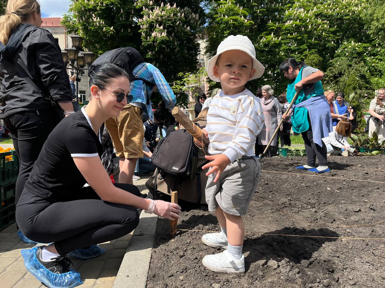 Активно долучалися до процесу і діти. Вони благали, щоб бабусі та матусі не починали роботи без їхньої участі. Малеча турботливо забирала розсаду і пересаджувала у землю. Під час процесу одна з дівчат говорила: «Татусь дивиться на мене з неба. Він радіє, що я допомагаю!»