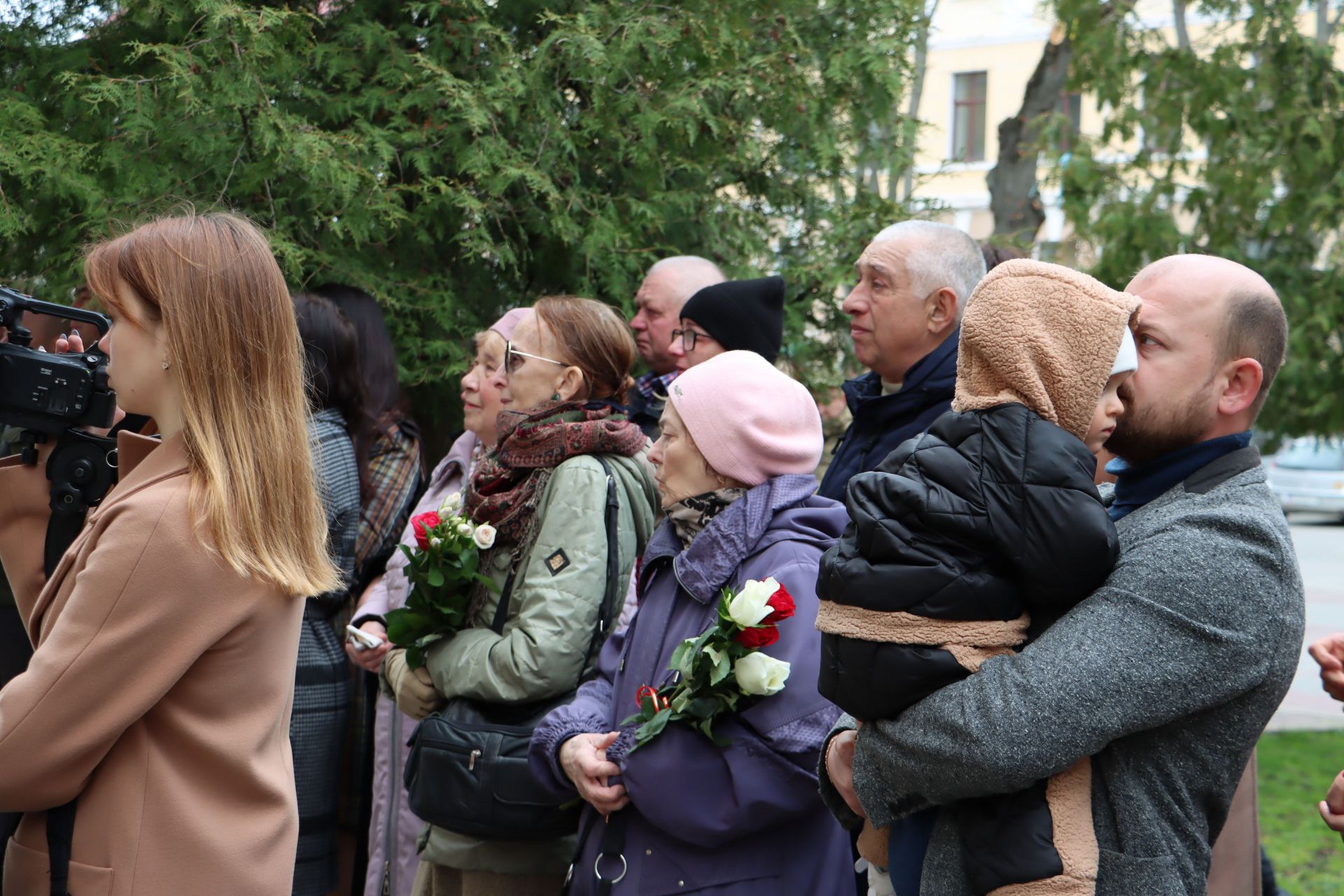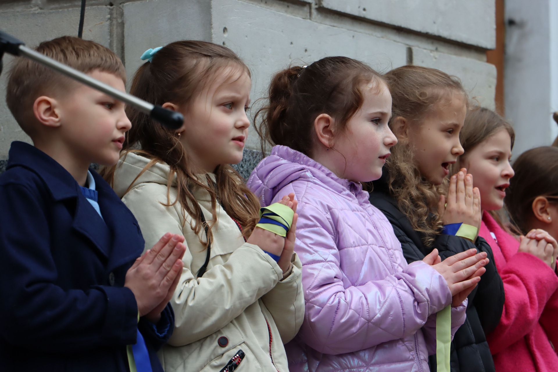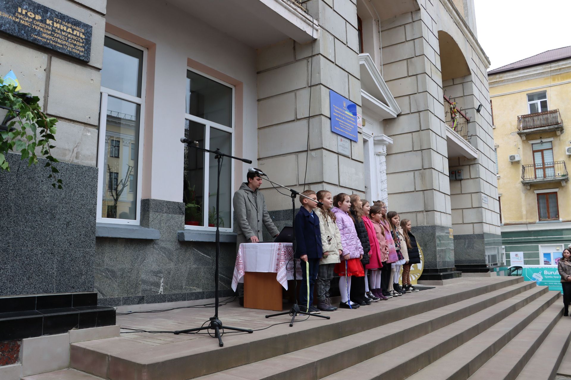 Право відкрити меморіальну дошку Герою Роману Стецюку надали міському голові Сергію Надалу та сестричці військового Анастасії. Зробили це під пісню «Гей пливе кача».