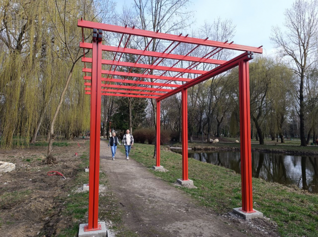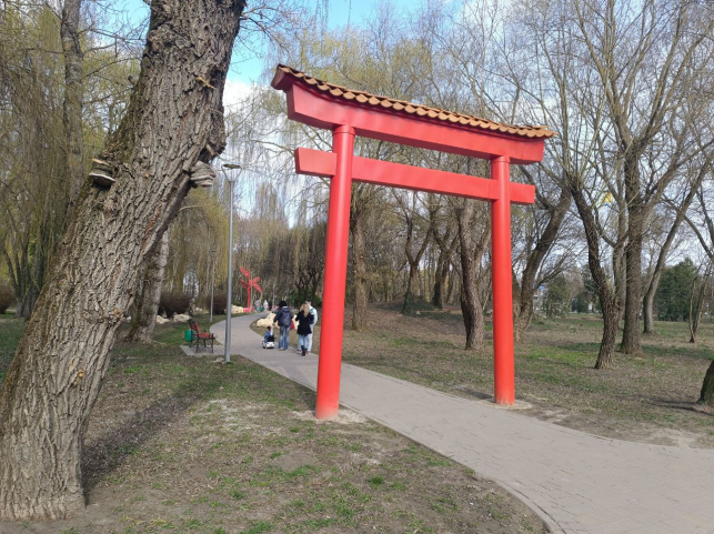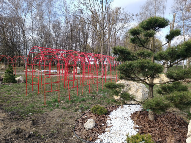 На території саду у японському стилі працює камера відеоспостереження. Також завезли 19 арок для троянд. Їх ще не встановили на місця.