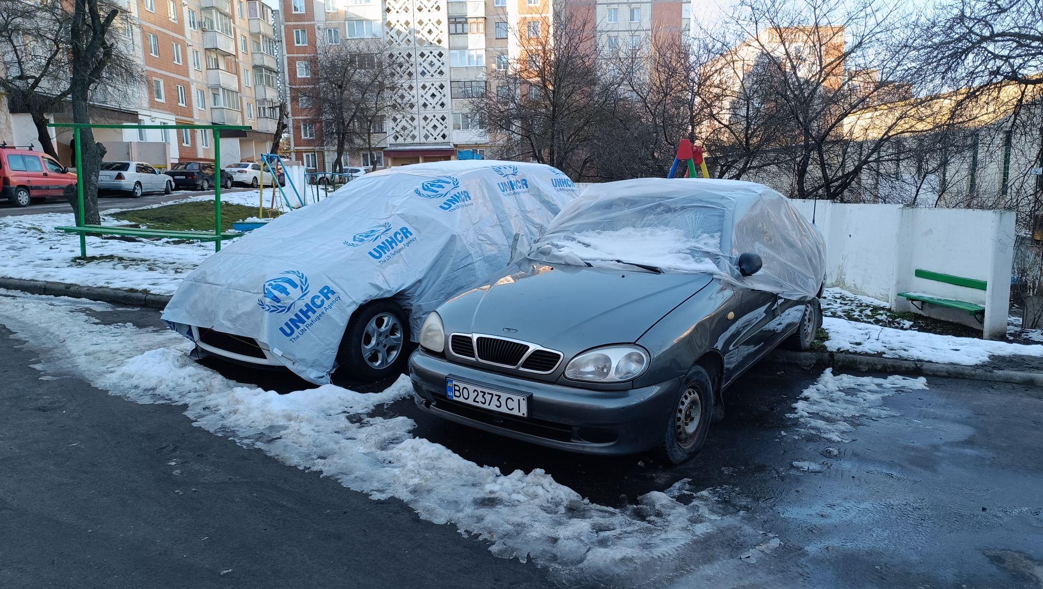 Пан Микола, житель четвертого під’їзду, має дерев’яний балкон. Каже, благодійна організація дала плівку, так і закрили. Поки що скло не вставляли.