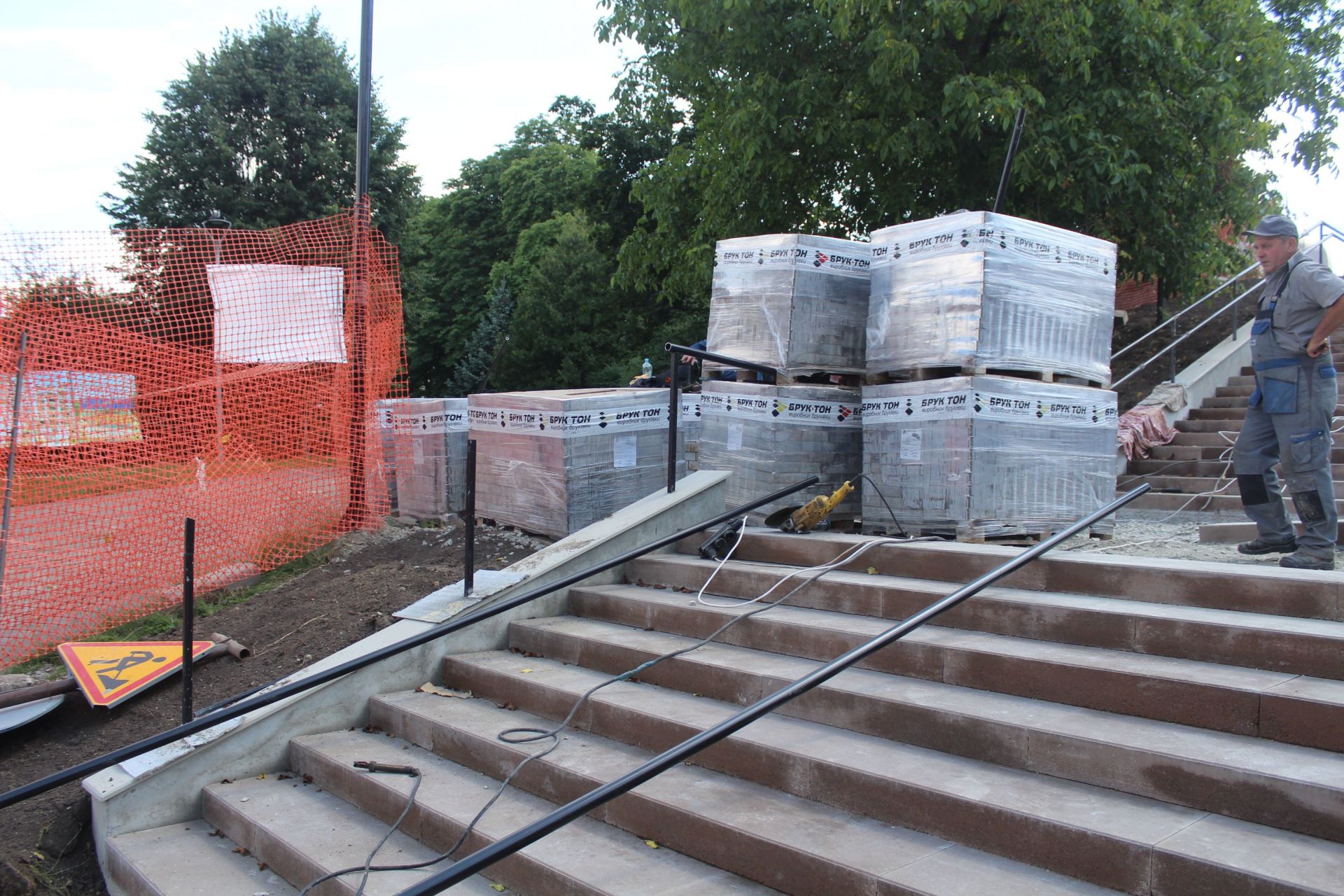 Як розповіли журналісті «20 хвилин» робітники, більша частина робіт вже зроблена. Старі сходи демонтували, встановили підпірні стінки, виконали заливку бетоном, встановили опори для перил та почали облаштовувати самі сходи з пандусом.