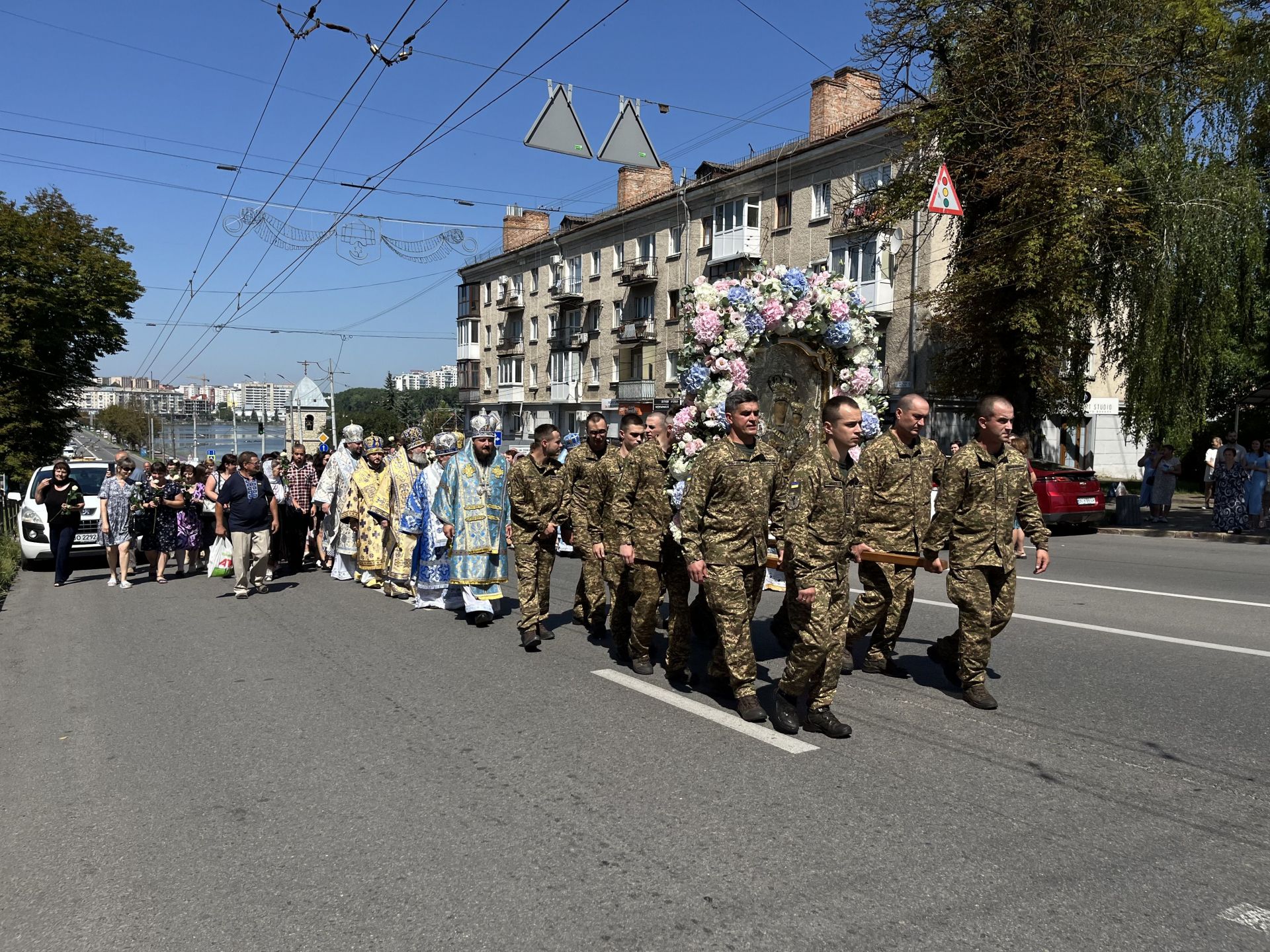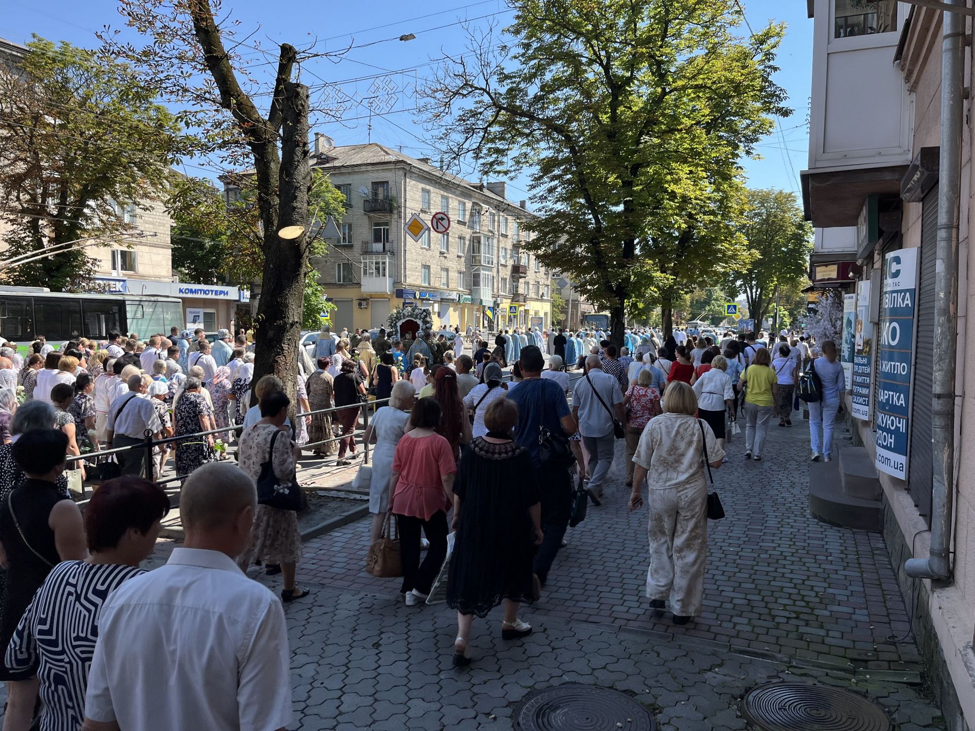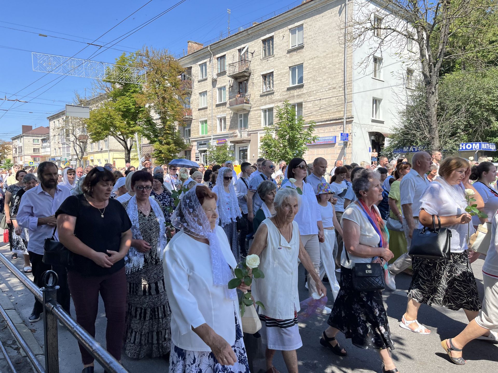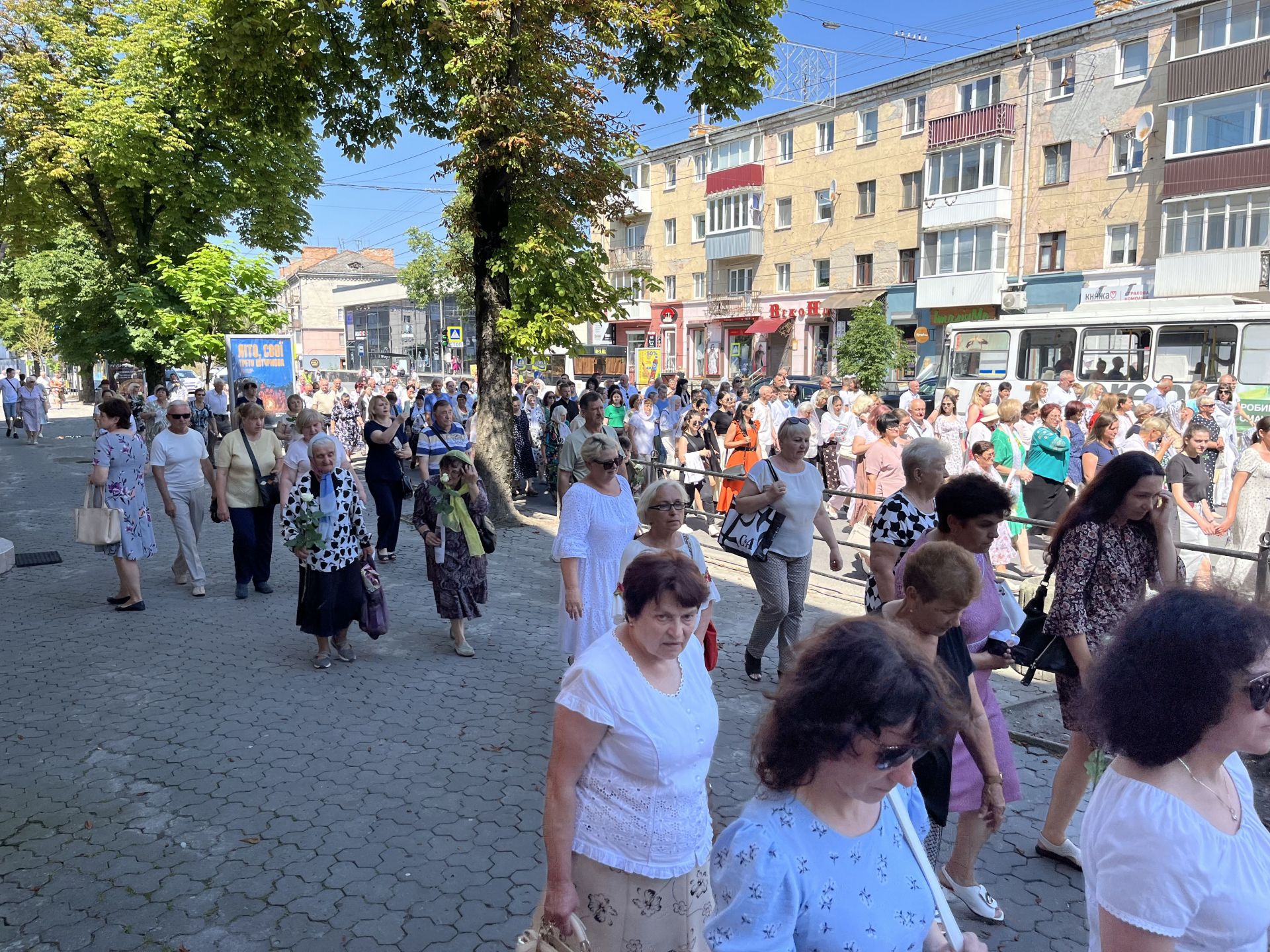 Після завершення богослужіння, віряни долучились до хресного ходу з іконою до кафедрального собору Різдва Христового, що на вулиці Руській, 22. Митрополит Епіфаній дарував вірянам білі троянди.