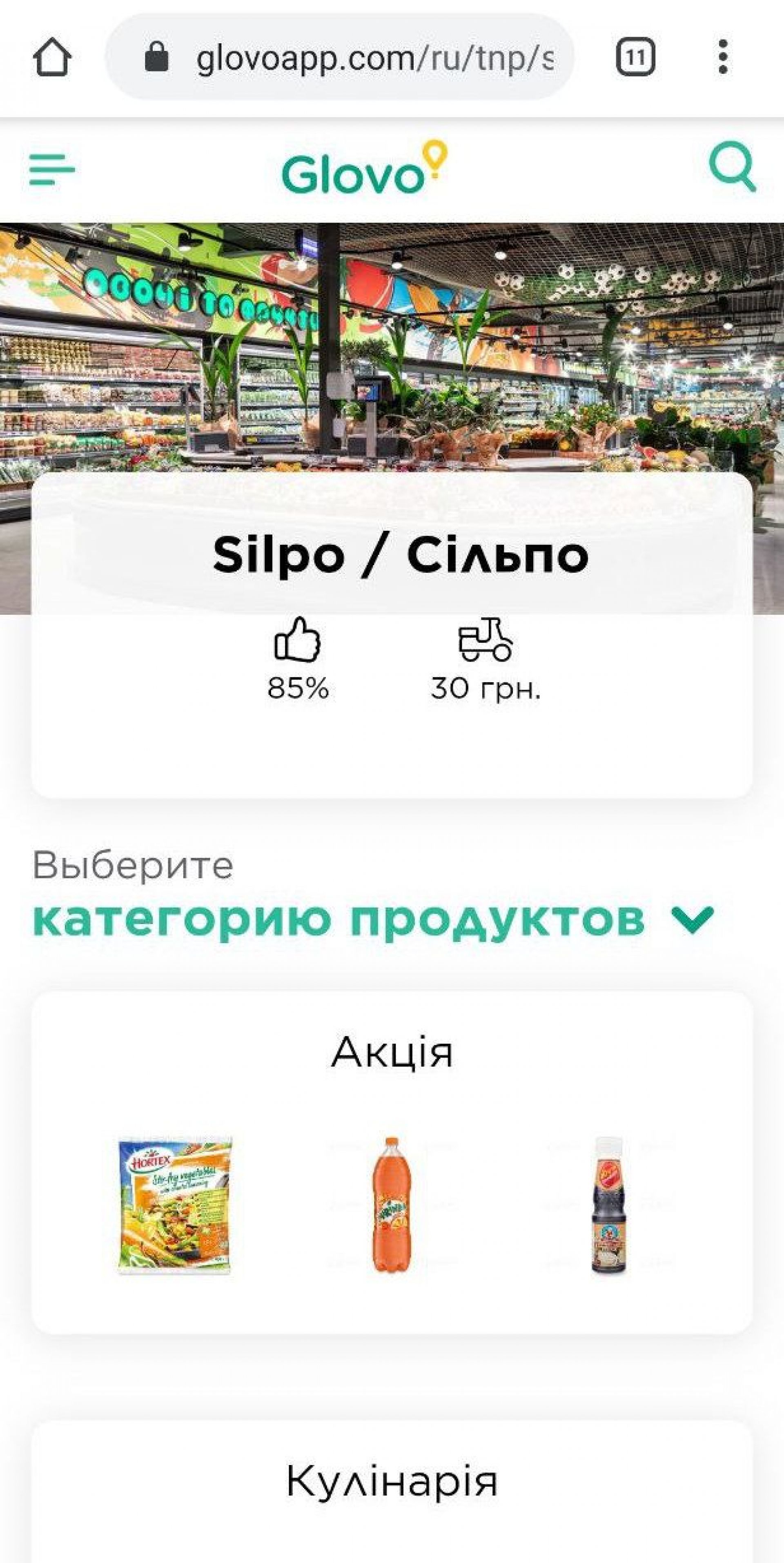 Ми також порівняли вартість доставки через GLOVO з «Сільпо». Так, наш кошик обійшовся в 400 гривень. На деякі товари ціна на сайгі «Глово» та онлайн-супермаркеті відрізнялась.