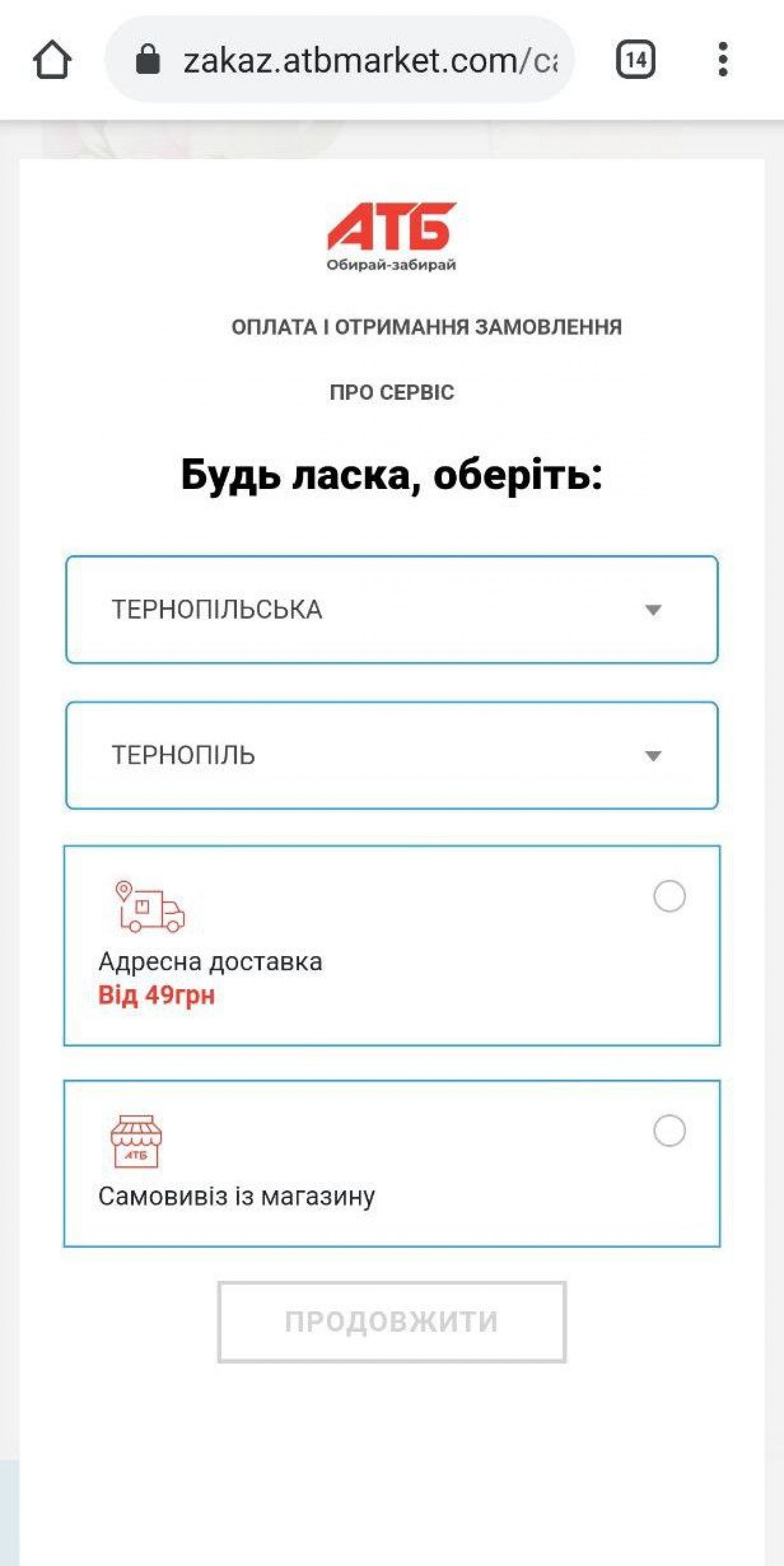 У Тернопіль можна лише замовити доставку продуктів поштою, однак те, що швидко псується. купити не вдасться.
