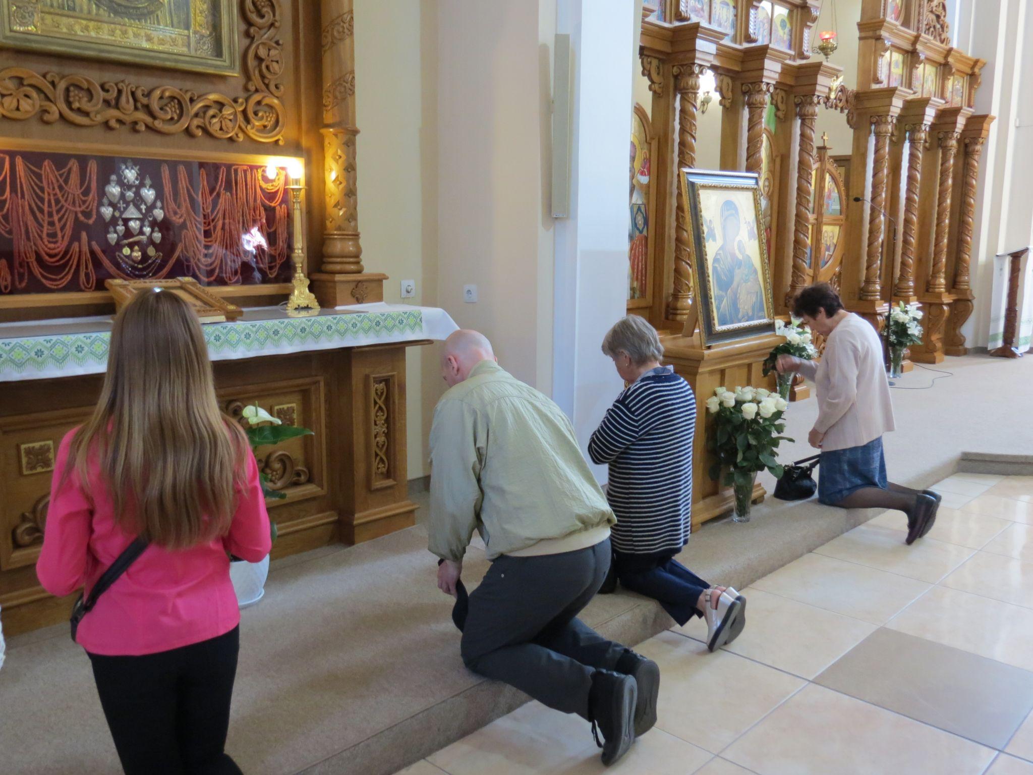У церкві було чимало людей. Багато вірян стояли на вулиці та слухали службу через гучномовець. Дехто приніс до храму квіти.