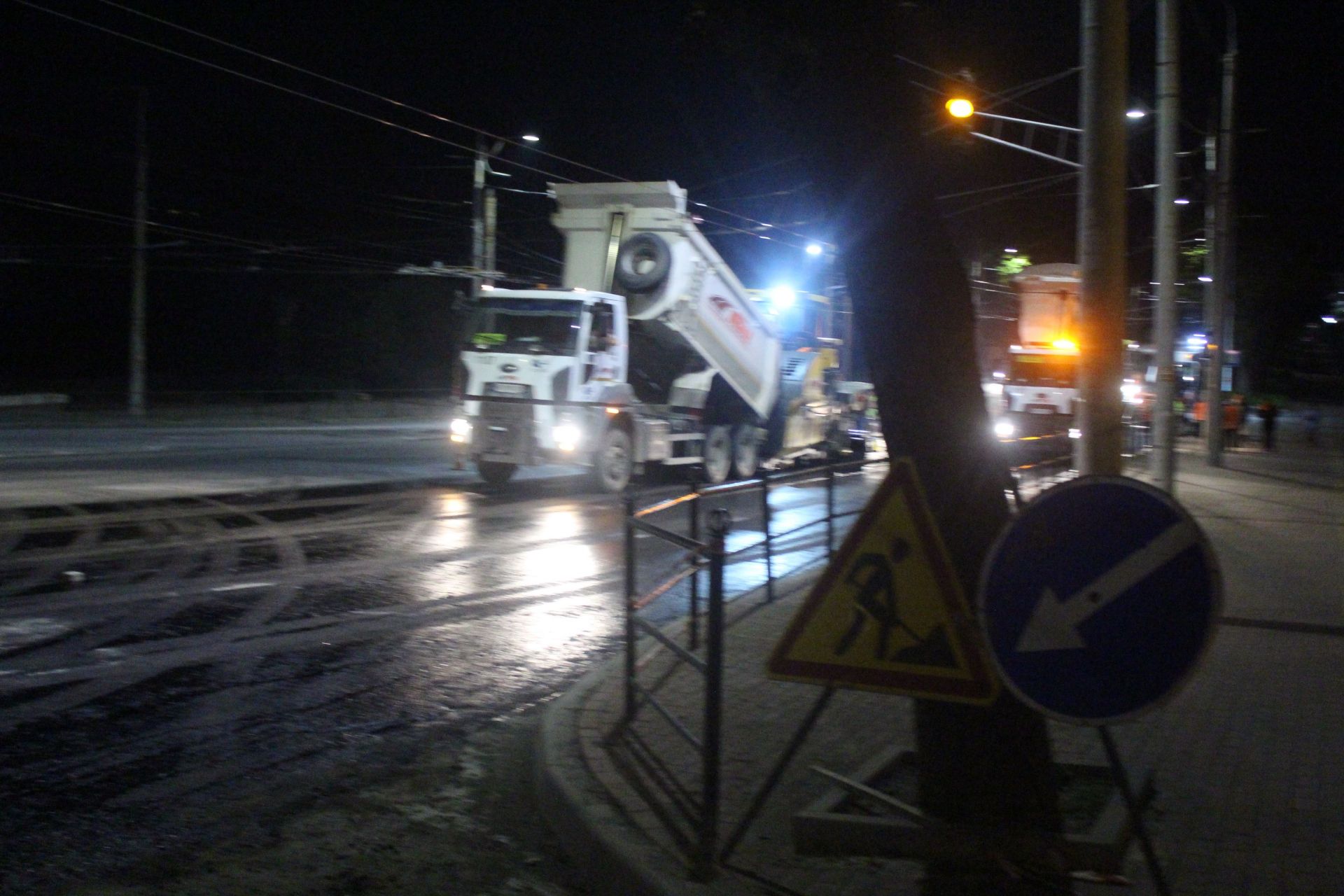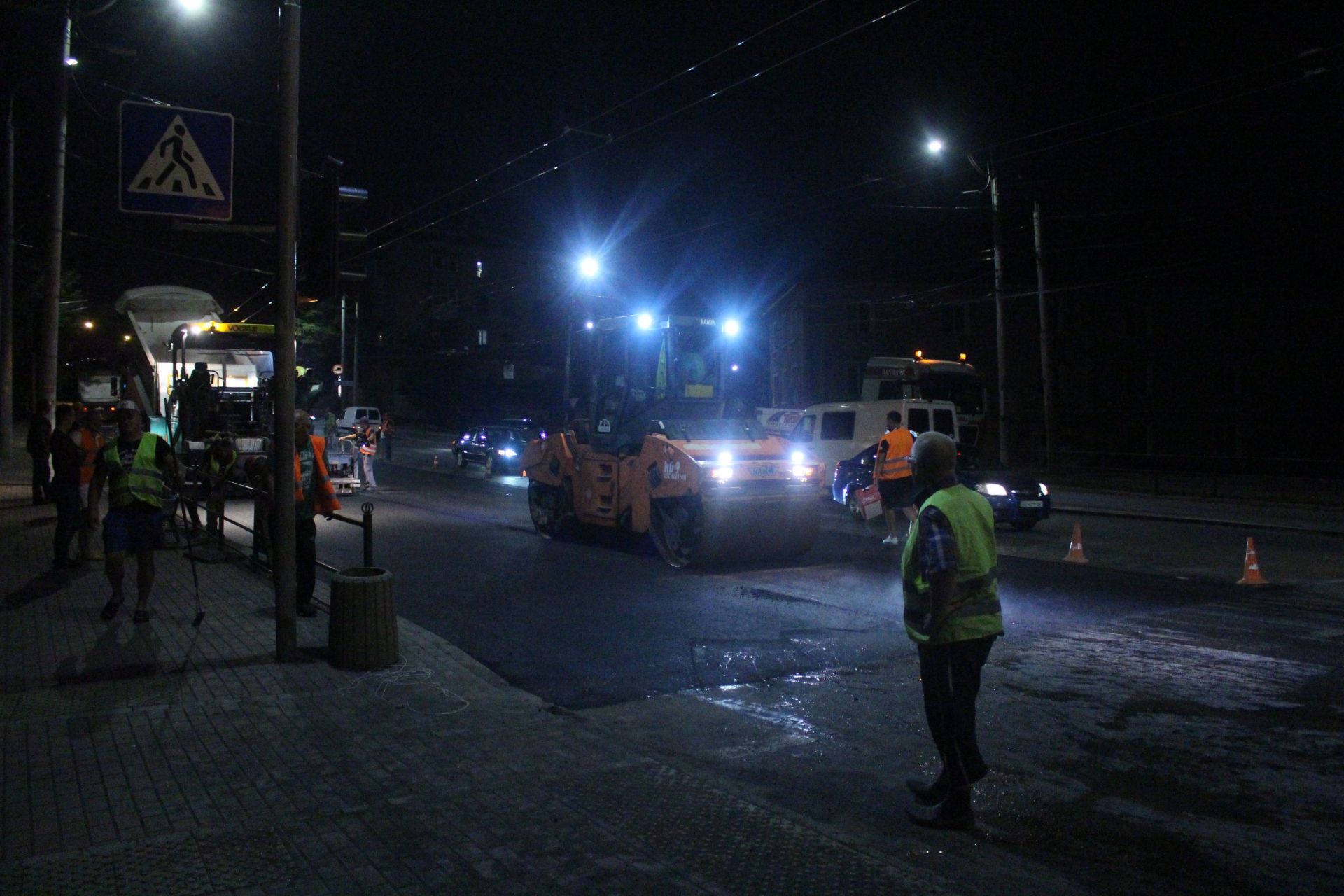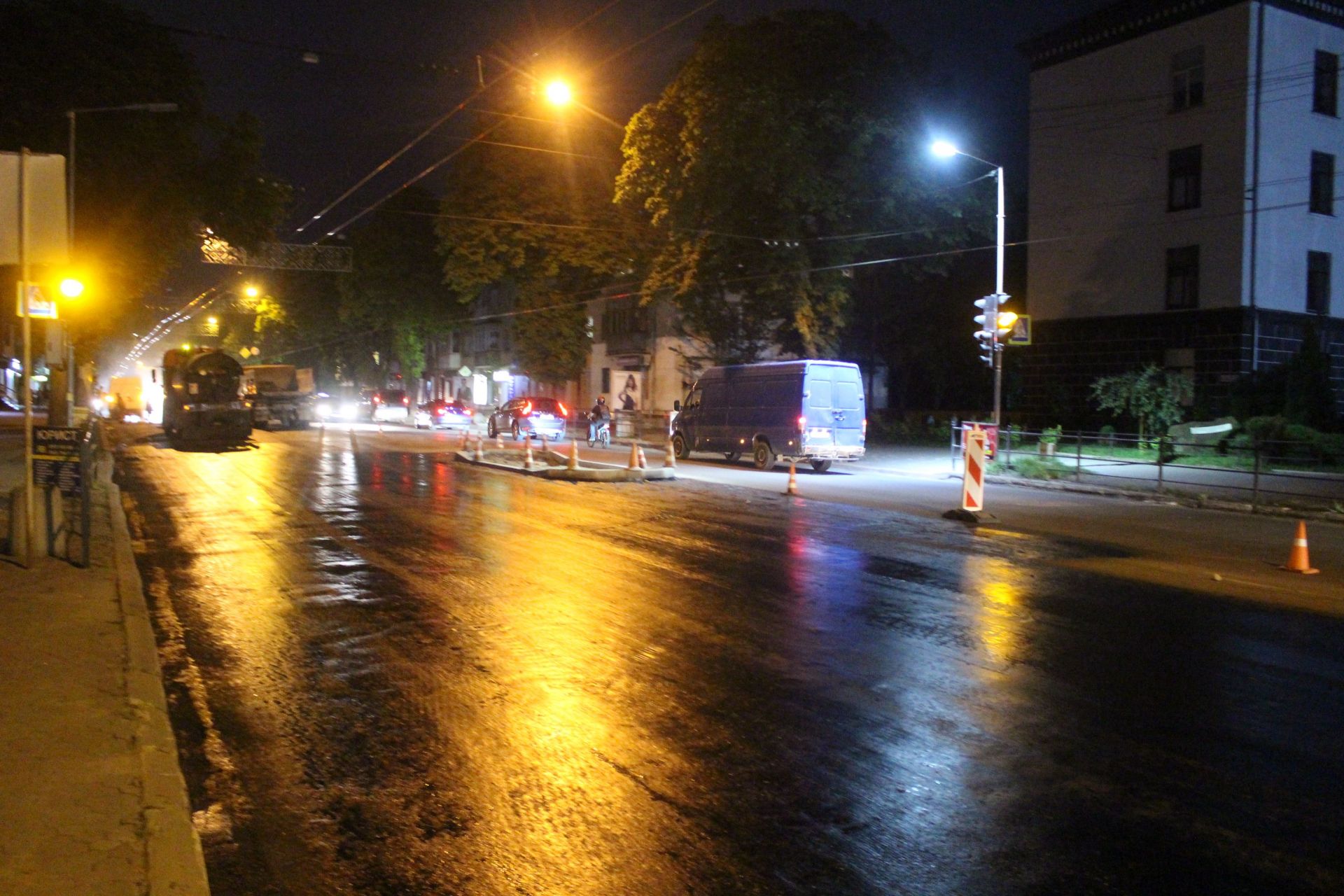 Робітники працюють в нічний час, щоб не заважати водіям та не створювати затори, однак майже до 1:00 на вулиці є активний рух автівок. Великих заторів все ж вдається уникати, хоча рух транспорту ускладнено.