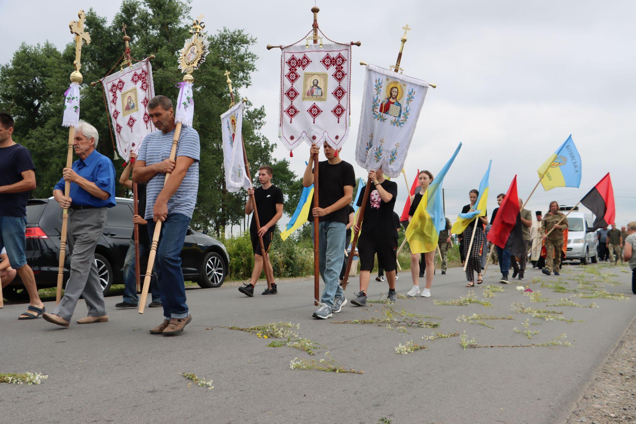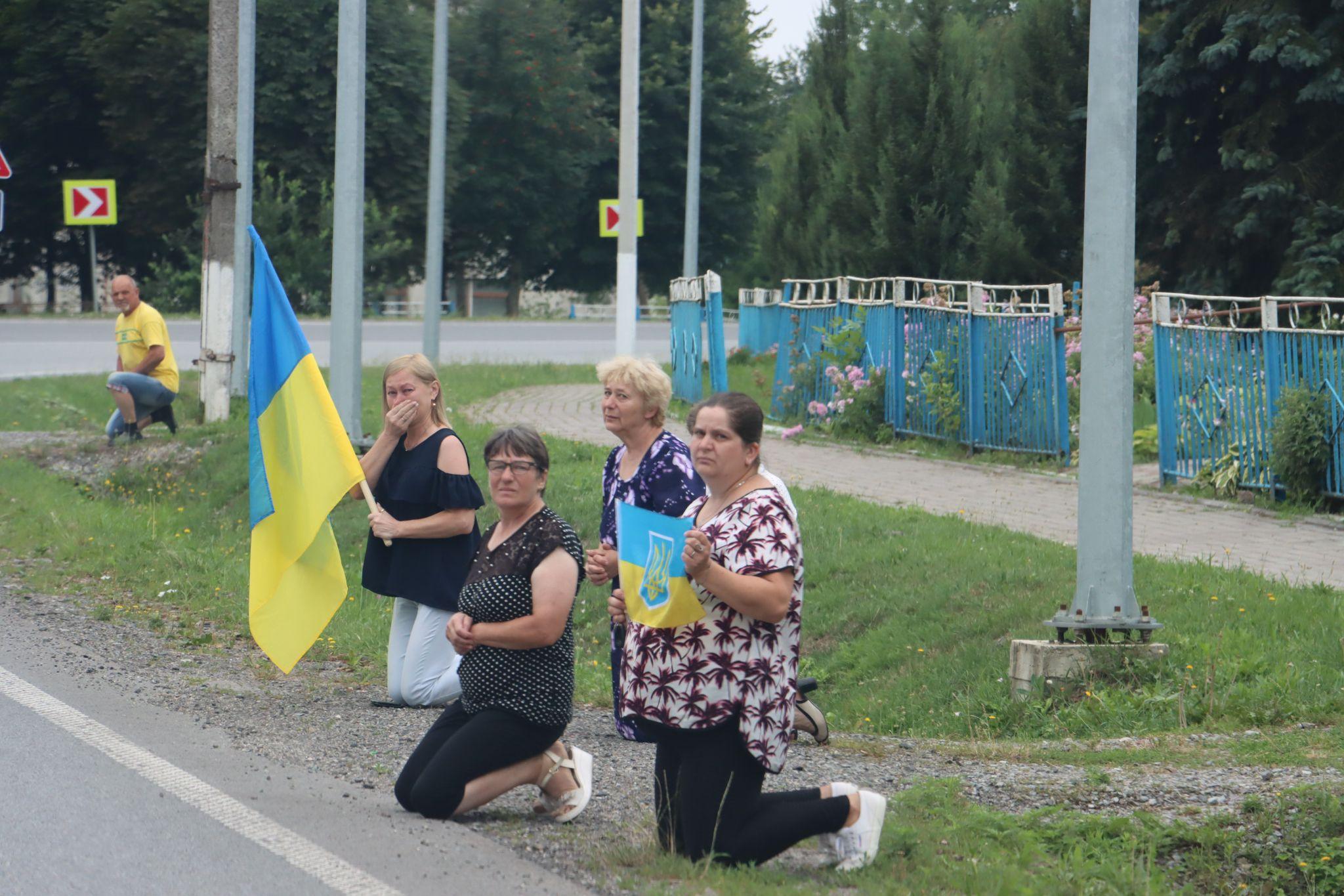 Односельчани стали на коліна та зробили «живий коридор». Сотні людей рухались за автомобілем, супроводжуючи полеглого воїна до рідного дому.