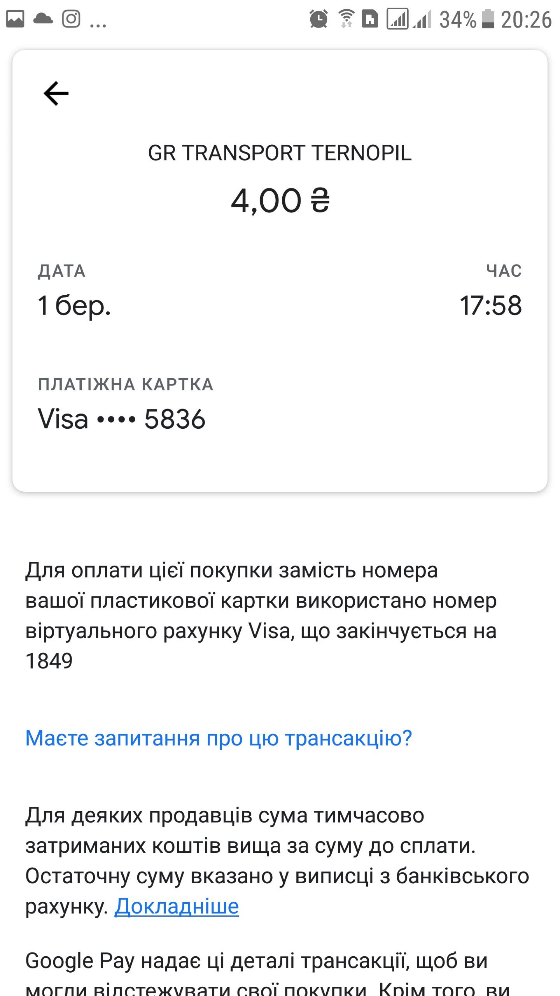 - Водій дещо здивувався на моє прохання і казав, щоб я пробував на свій страх і ризик, та в разі чого не виставляв йому претензій, - каже Андрій. - Бо йому "щось там казали, але він без поняття, що то таке", потім довго розглядав квиток. Наступного разу спробую Android Pay та Master Card, цього разу використав картку VISA.