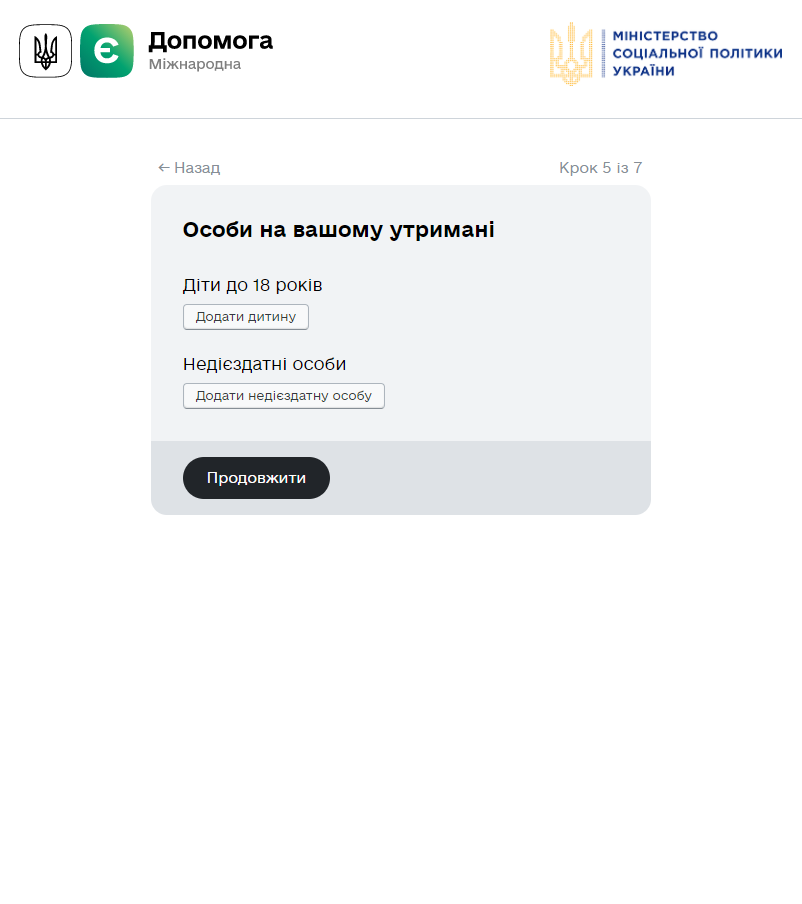Обираємо, чи є на вашому утриманні діти до 18 років або недієздатні особи.