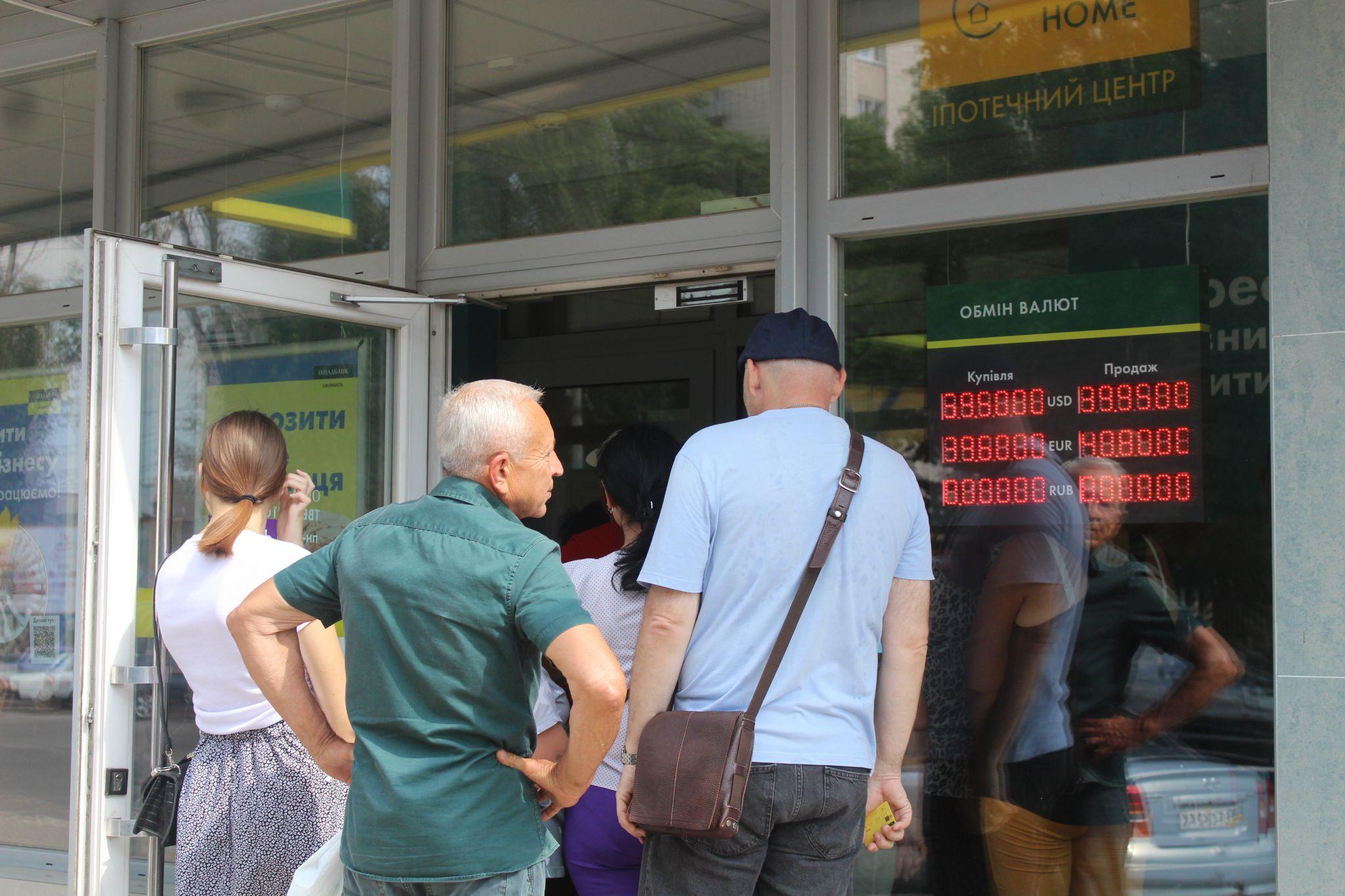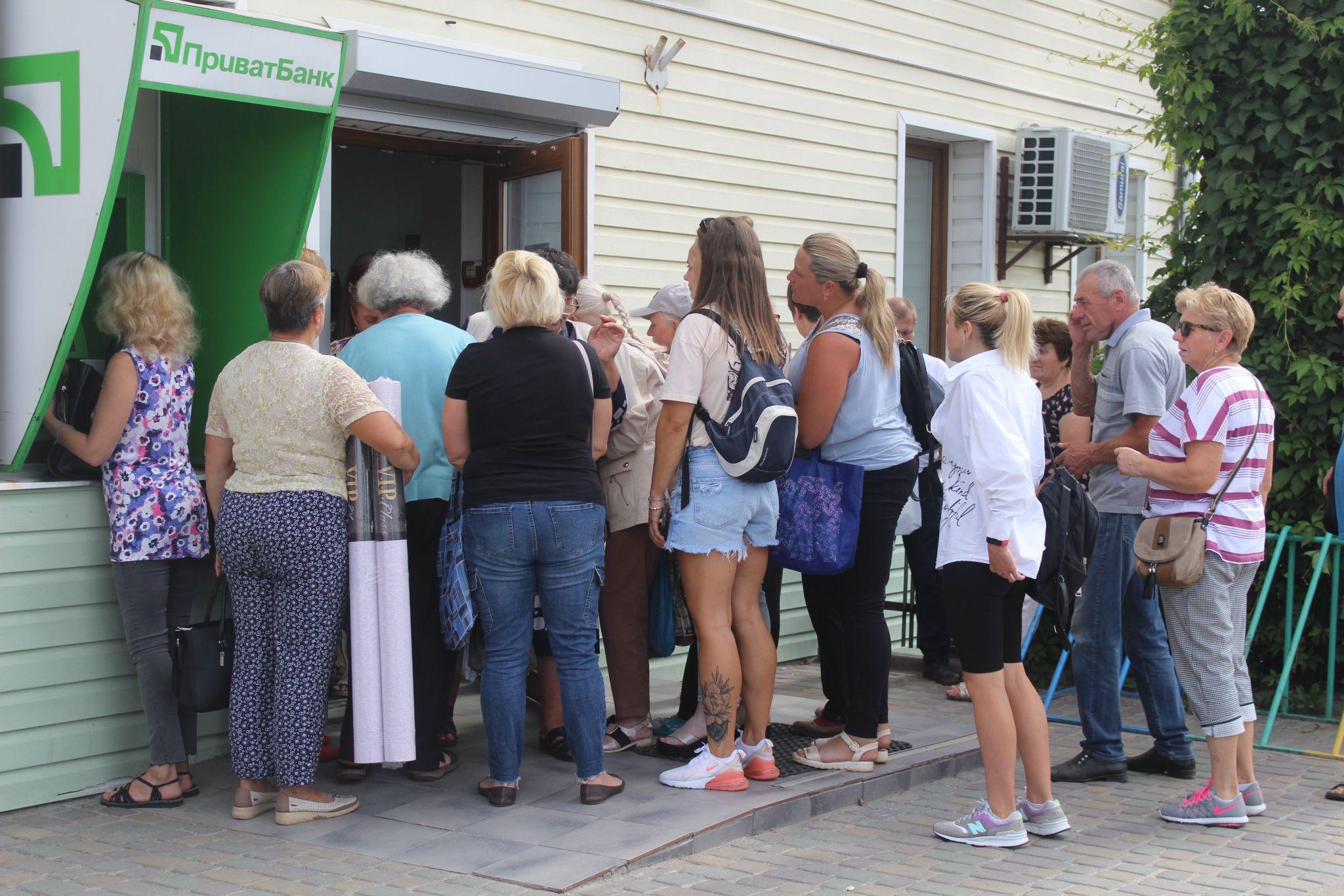 Від ранку, 29 липня, біля деяких відділень місцевих банків почали з’являтися черги з кількох десятків людей. Переважно це люди старшого віку. Біля одного з відділень «ПриватБанку» була черга.