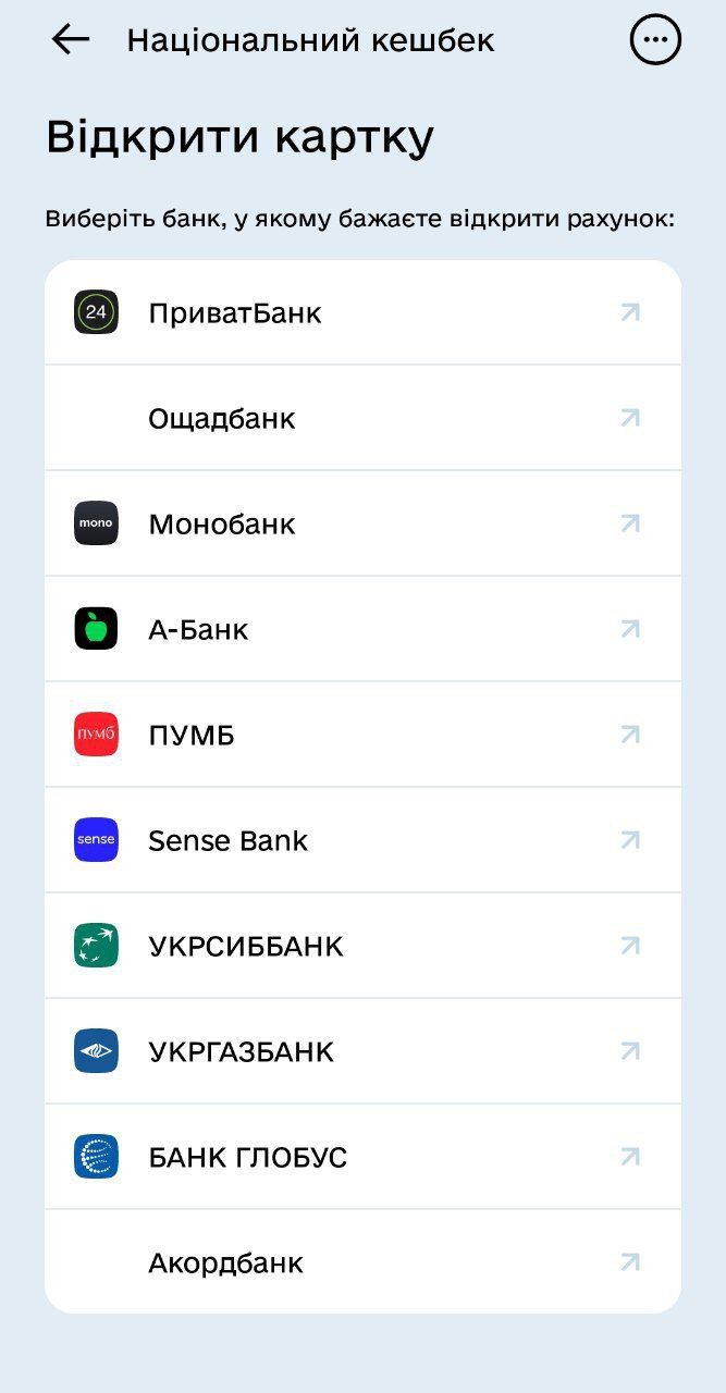 Відкриваємо мобільний застосунок вашого банку та відкриваємо новий рахунок для кешбеку.