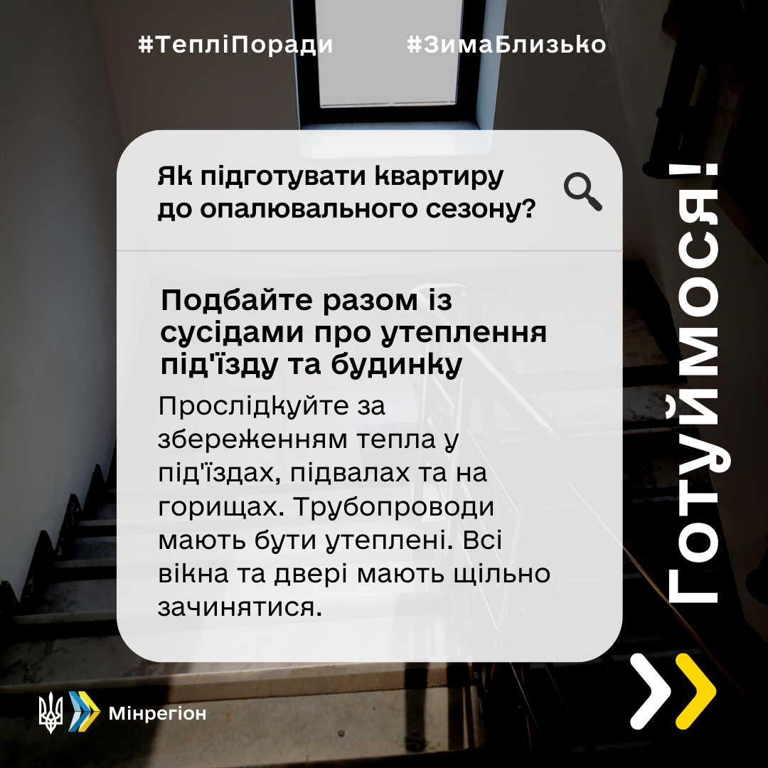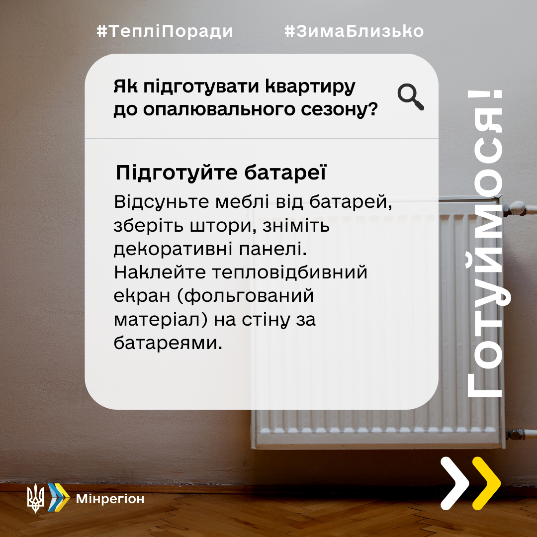 Міністерство розвитку громад та територій України розпочинає комунікаційну кампанію «Готуймося!», спрямовану на спонукання громадян індивідуально готуватися до опалювального сезону. Адже одним із важливих заходів підготовки є проведення побутової термомодернізації власниками квартир та індивідуальних будинків.