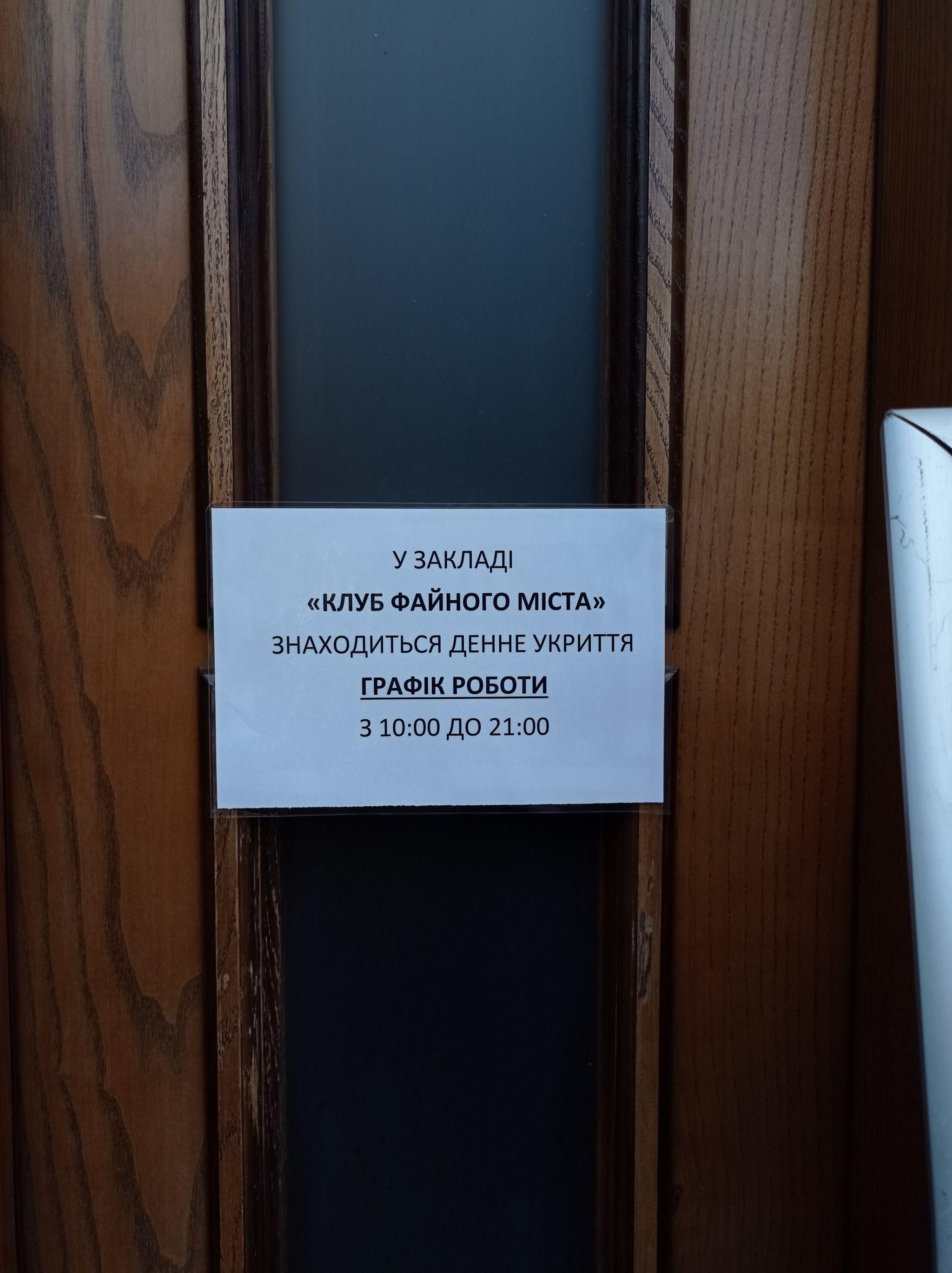 У «Клубі Файного Міста» вже є оголошення про наявність укриття, яке працює з 10:00 до 21:00.