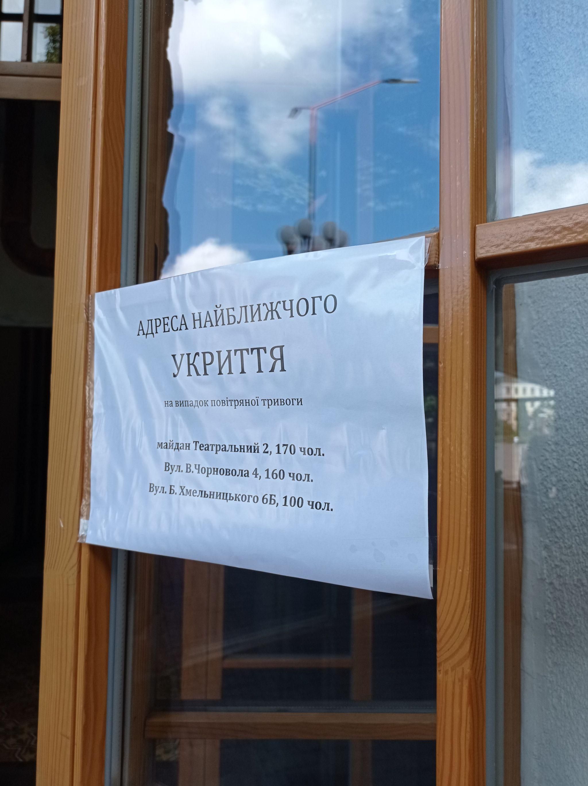 У цьому закладі є укриття. На вхідних дверях – оголошення, що укриття для населення працює у робочий час з 11:00 до 23:00. Під час повітряної тривоги сюди зайти можуть всі охочі.
