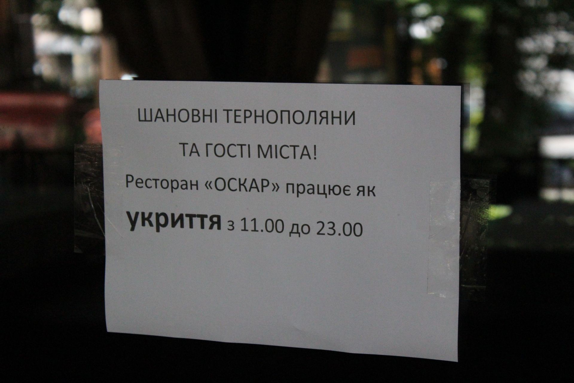 – У нас є ряд закладів, які відповідають вимогам безпеки, – каже міський голова. – Вони можуть використовуватися як укриття для людей. Спеціальні комісія їх наразі обстежує. Ми надамо можливість таким закладам працювати, але за умови, що туди матимуть доступ всі тернополяни.