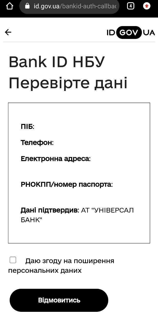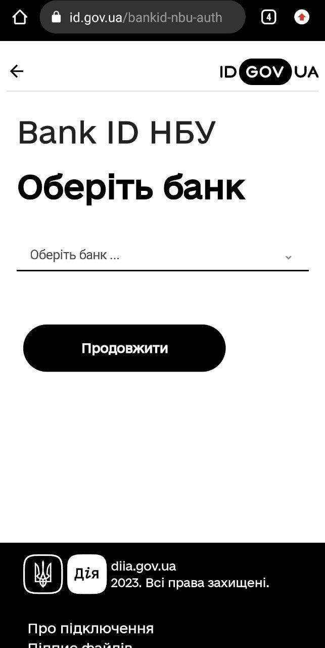 Обравши ваш банк – тиснемо «Продовжити». Відкриється застосунок мобільного банкінгу. Потрібно увійти за допомогою пароля чи пін-коду (залежно від банку) та підтвердити авторизацію.