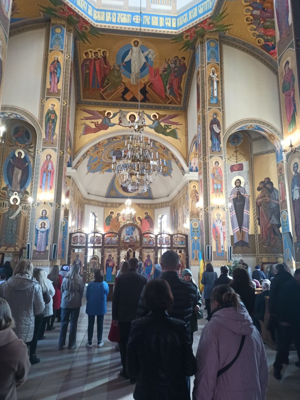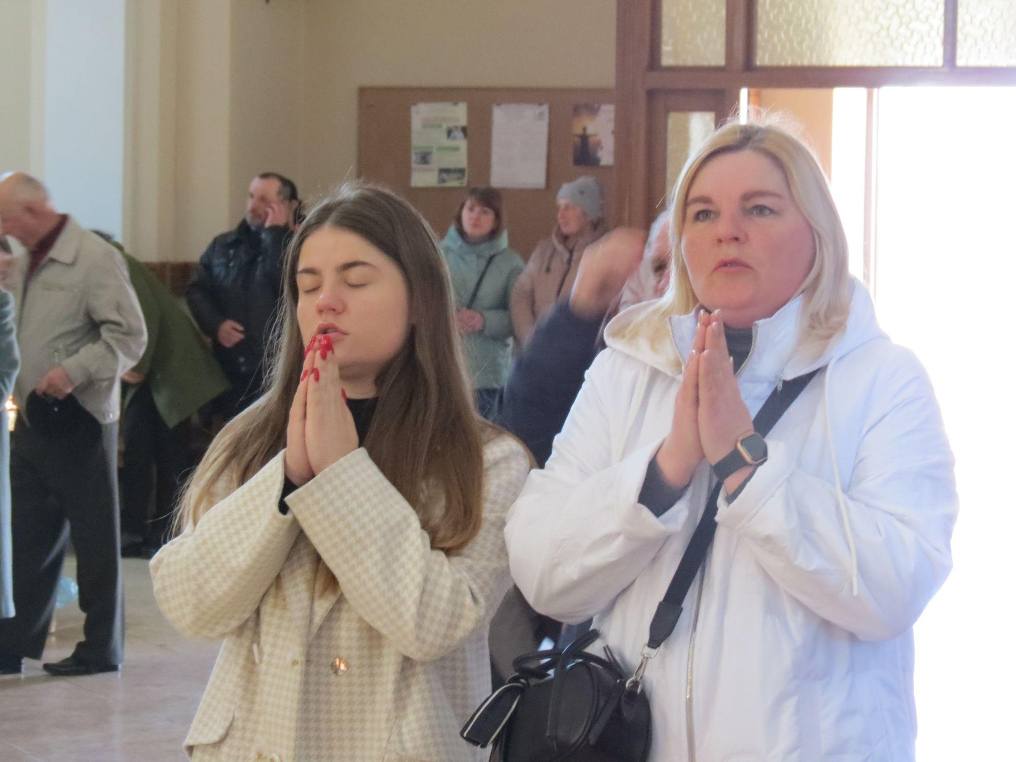 Всередині храму було багато людей. Ті, хто не зміг пройти в церкву, слухали службу на вулиці. Під час служби молилися за мир та перемогу в нашій країні, а також за наших захисників.