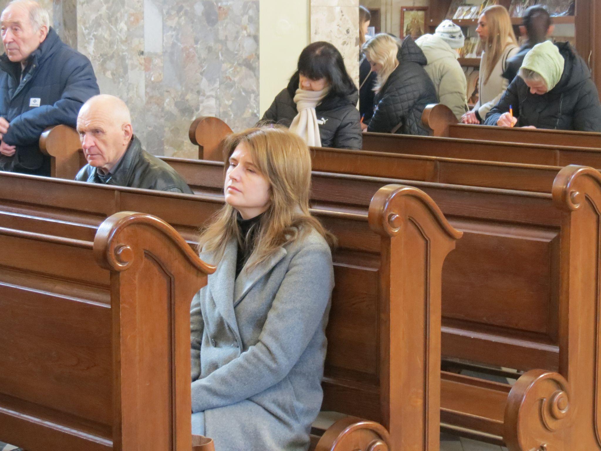 Тернополяни збиралися на службу. Дехто на кілька хвилин заходив до храму перед роботою, щоб помолитися.