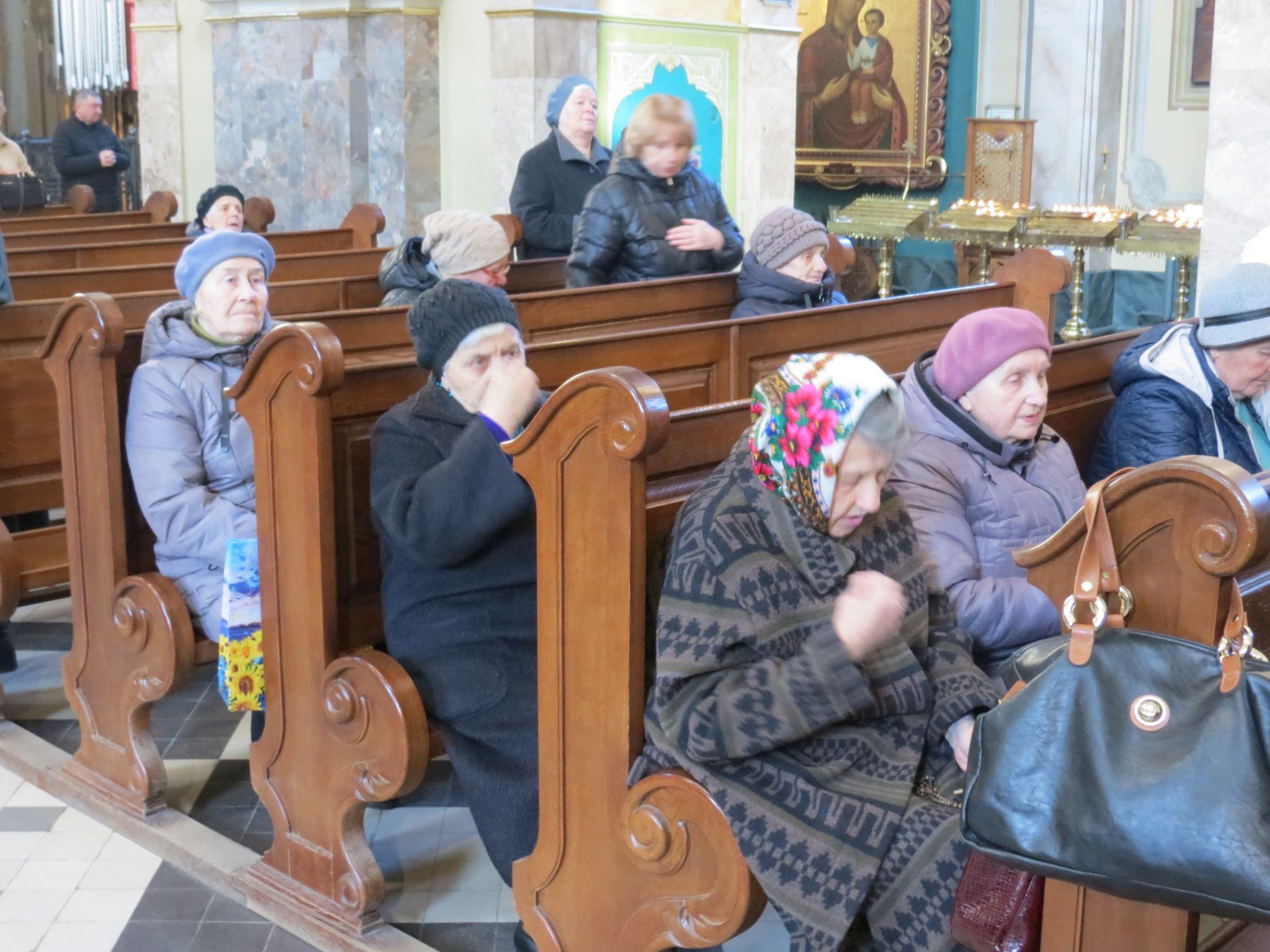 До церкви прийшли багато людей. Дехто приходив усією сім'єю.