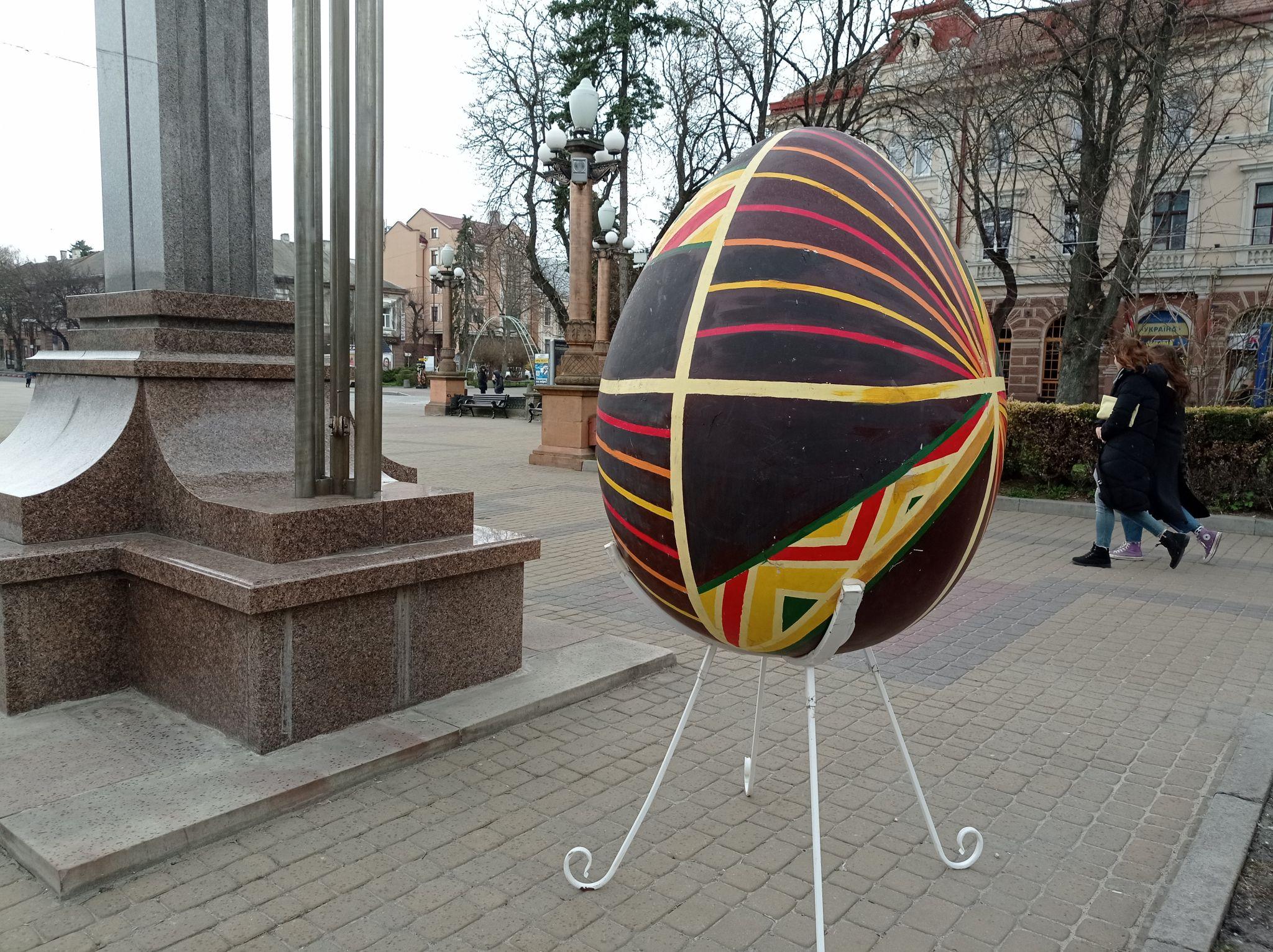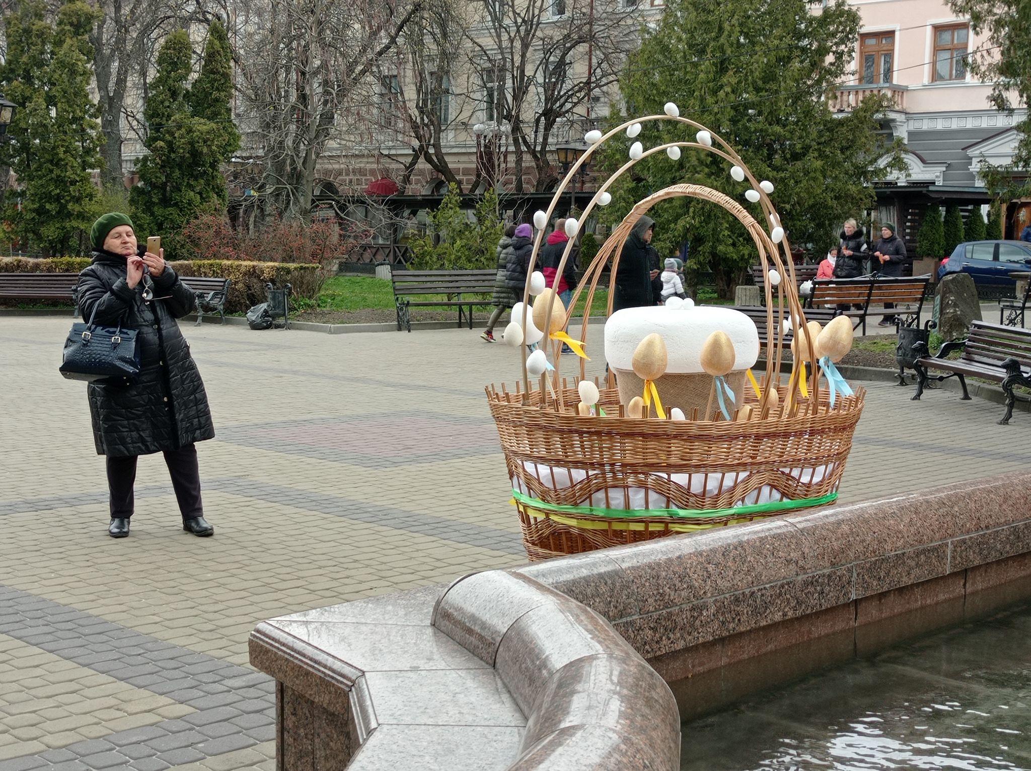 Місцеві та переселенці фотографують декорації. Кілька великих кошиків встановили біля фонтанів. Великі писанки встановили біля пам'ятника Соломії Крушельницькій, монументу Незалежності та біля входу до драматичного театру.