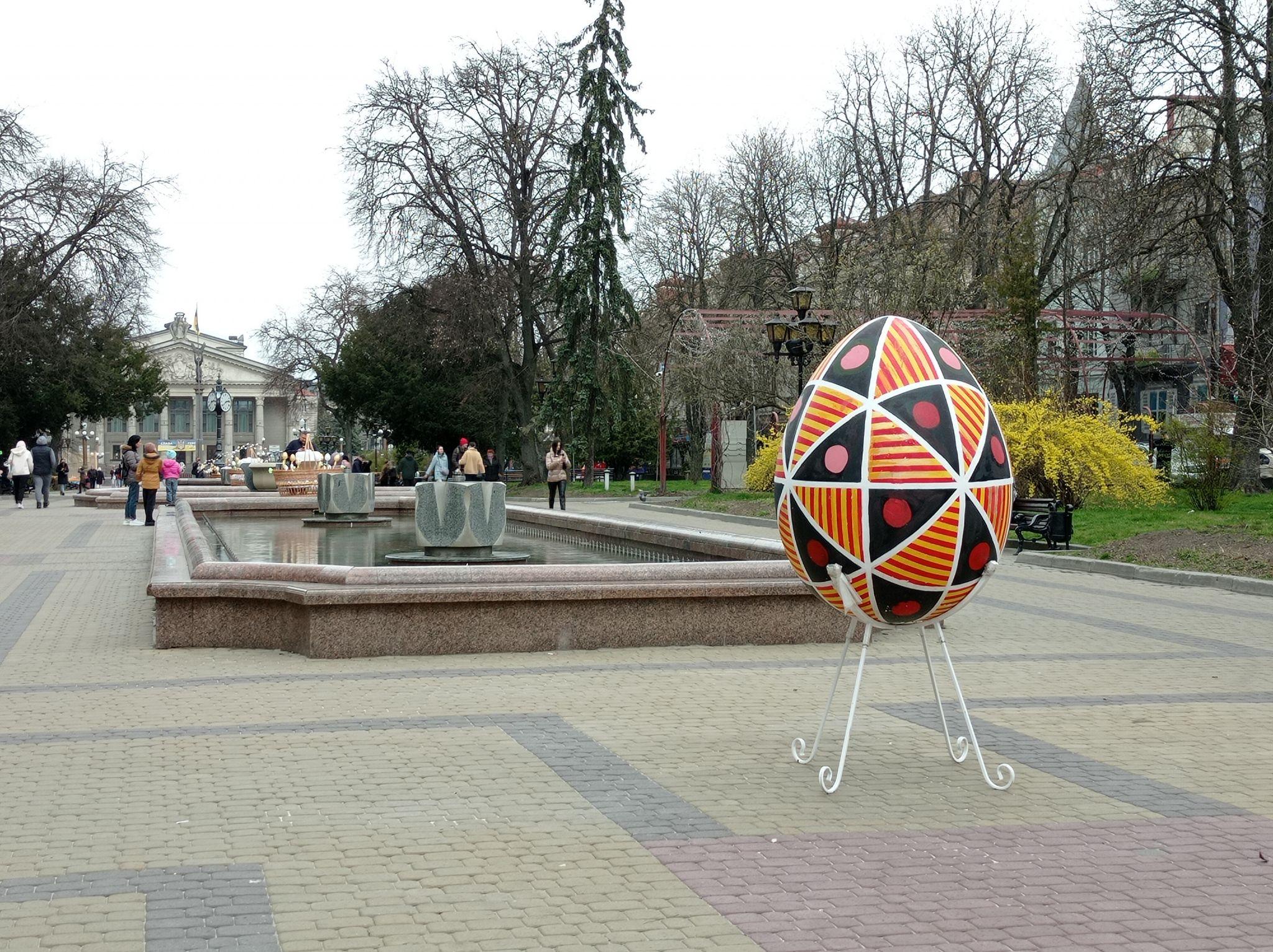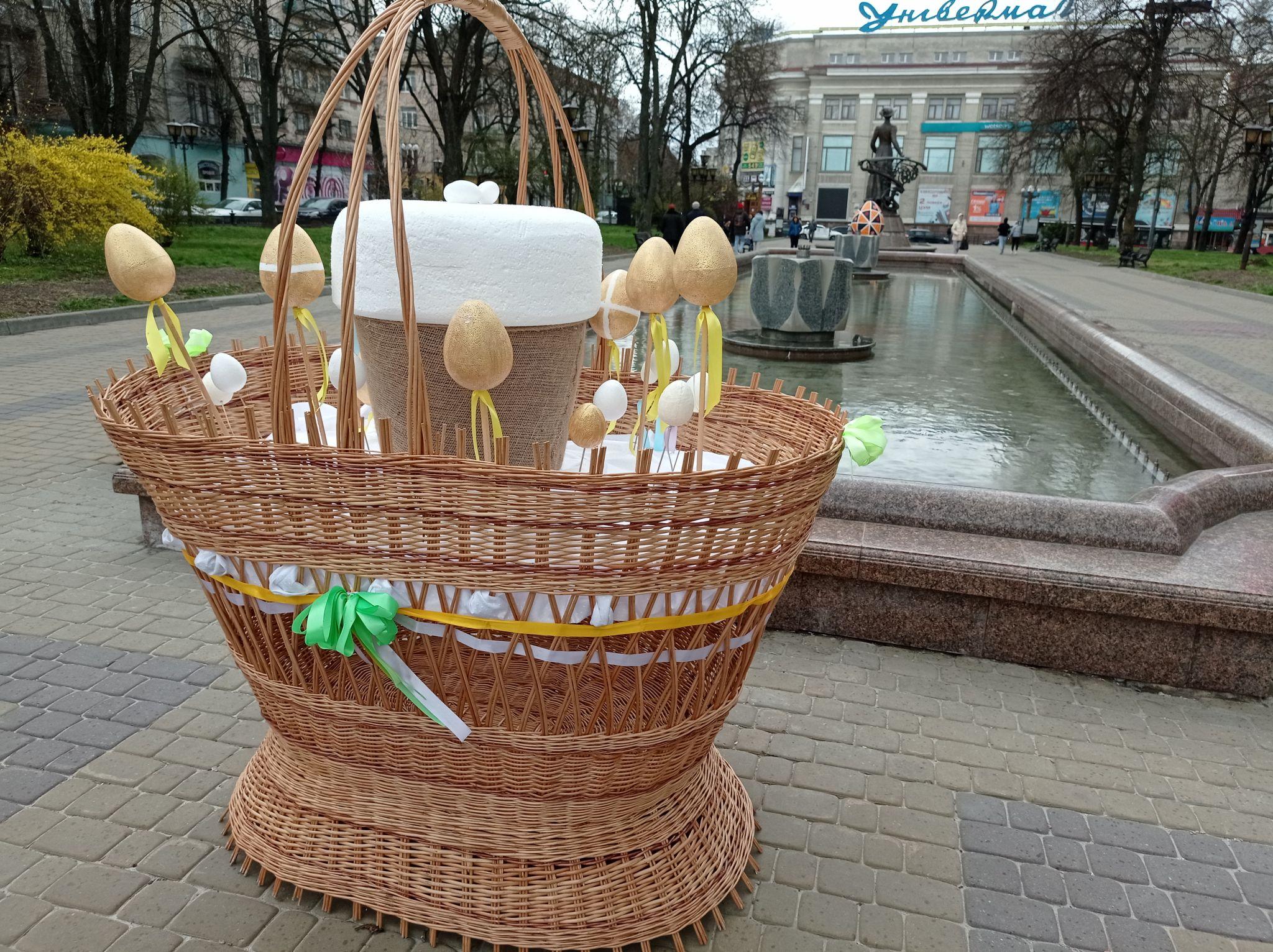 Бульвар Тараса Шевченка до Великодня прикрасили кошиками та великими макетами писанок.