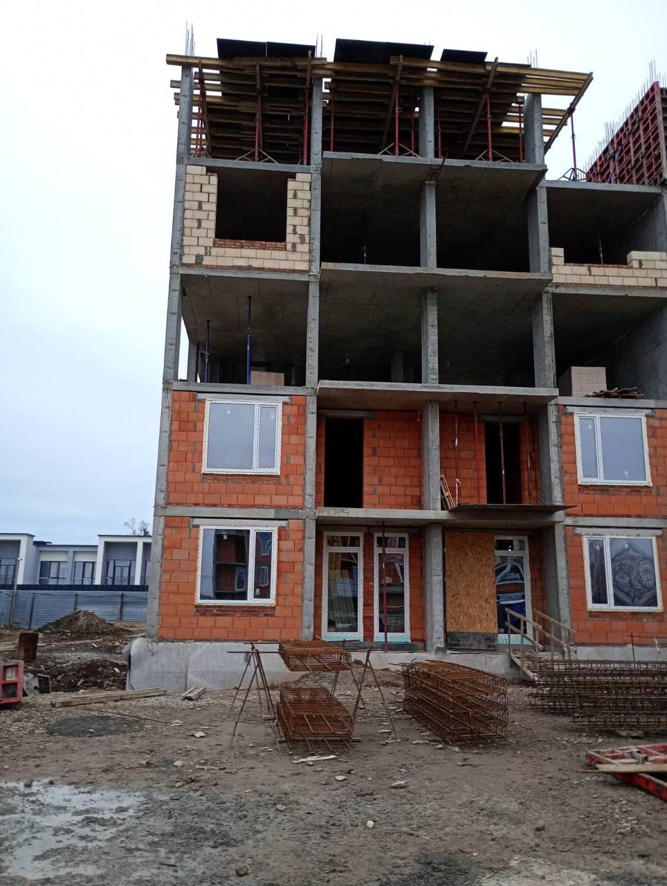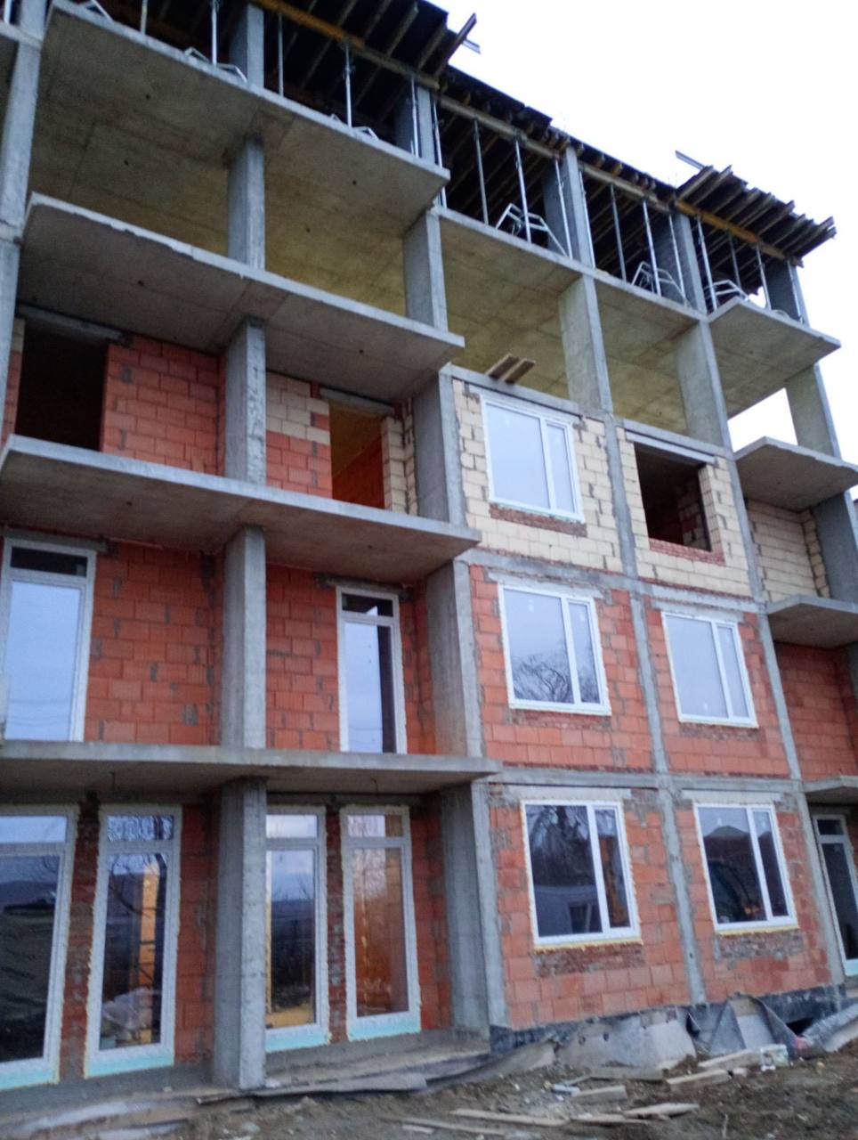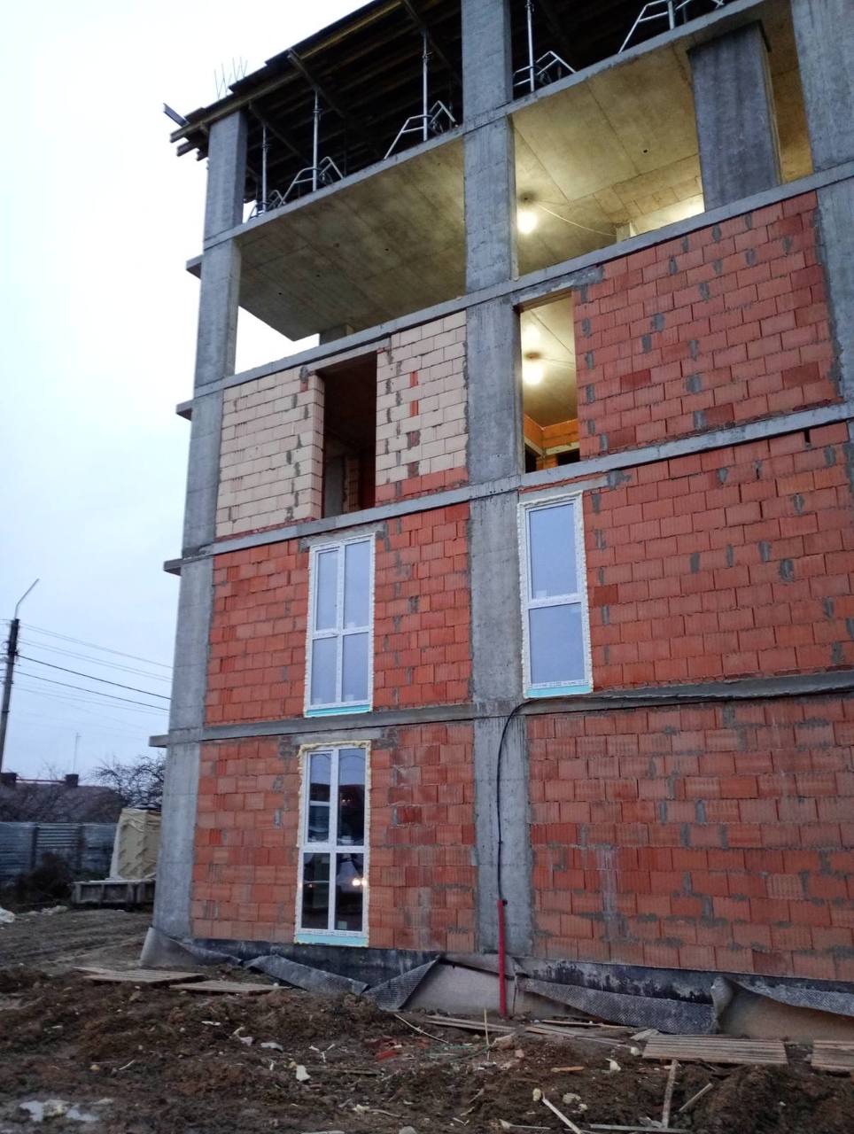 У секції Б збудували п’ять поверхів, на трьох з яких замурували зовнішні стіни та встановили віконні блоки, на стадії мурування та скління четвертий поверх. А на першому поверсі провели електрику та поштукатурили, повідомив Ігор Гірчак.
