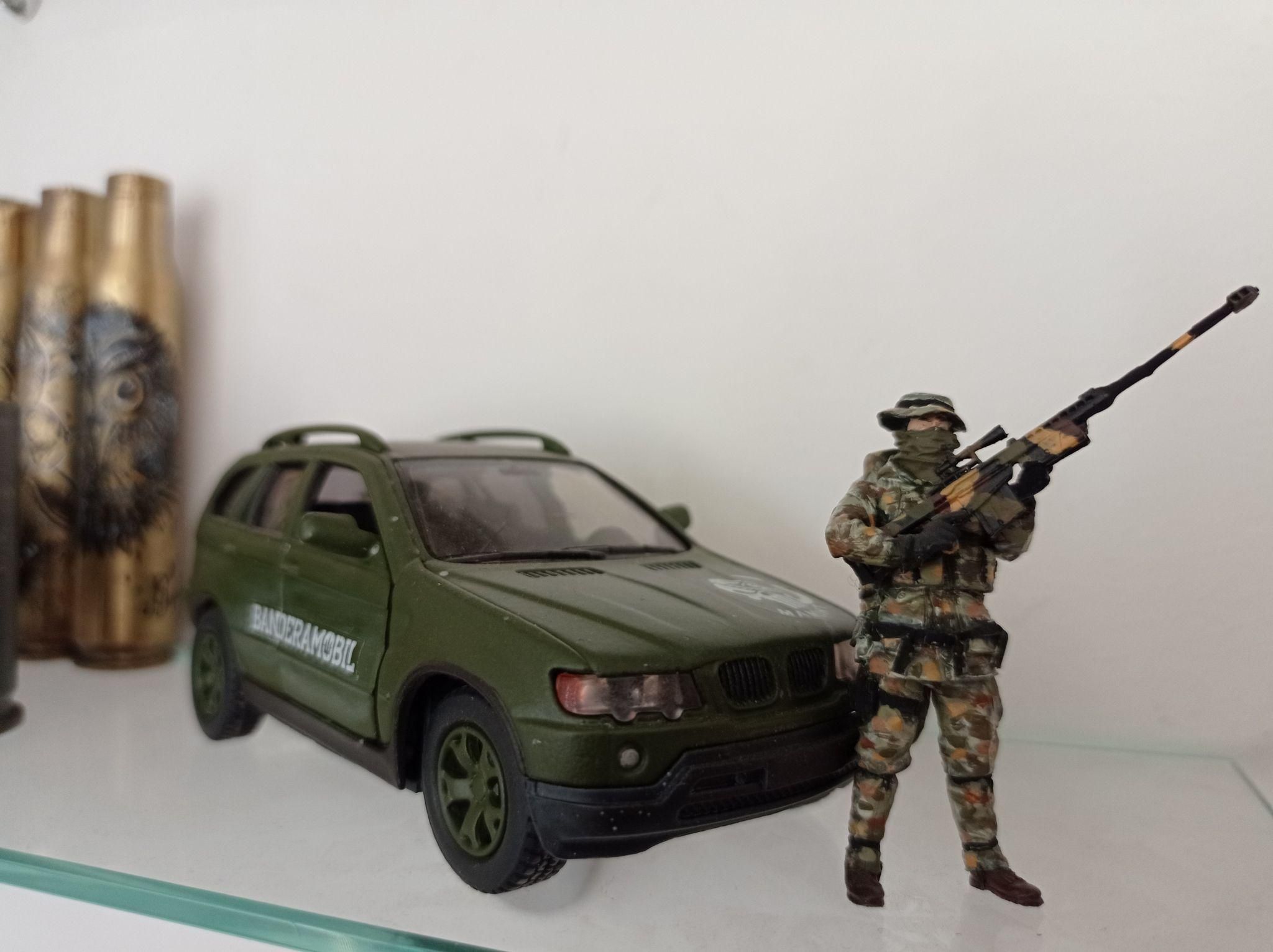 – Ми придбали та відправили на передову чимало бандеромобілів, які потрібні військовим, – каже Роман «Мамонт». – Нам допомагали різні меценати та донатори по всьому світу. Ми вирішили дарувати благодійникам, які найбільше допомагають, масштабні моделі.
