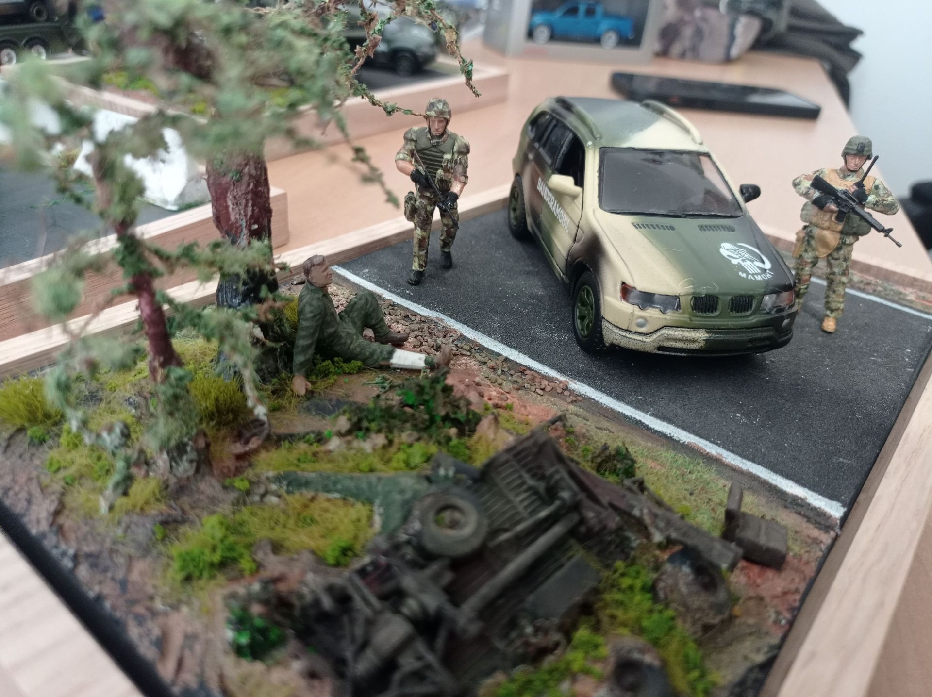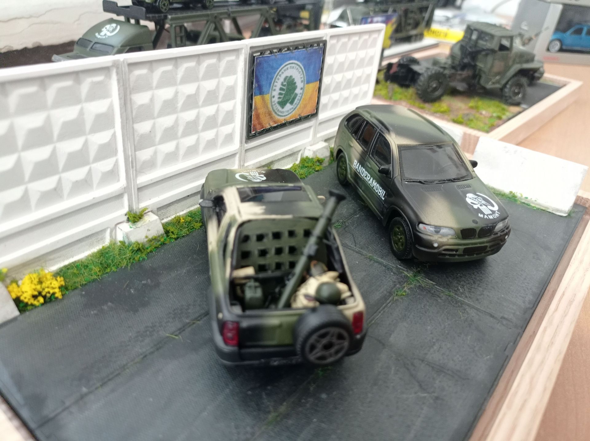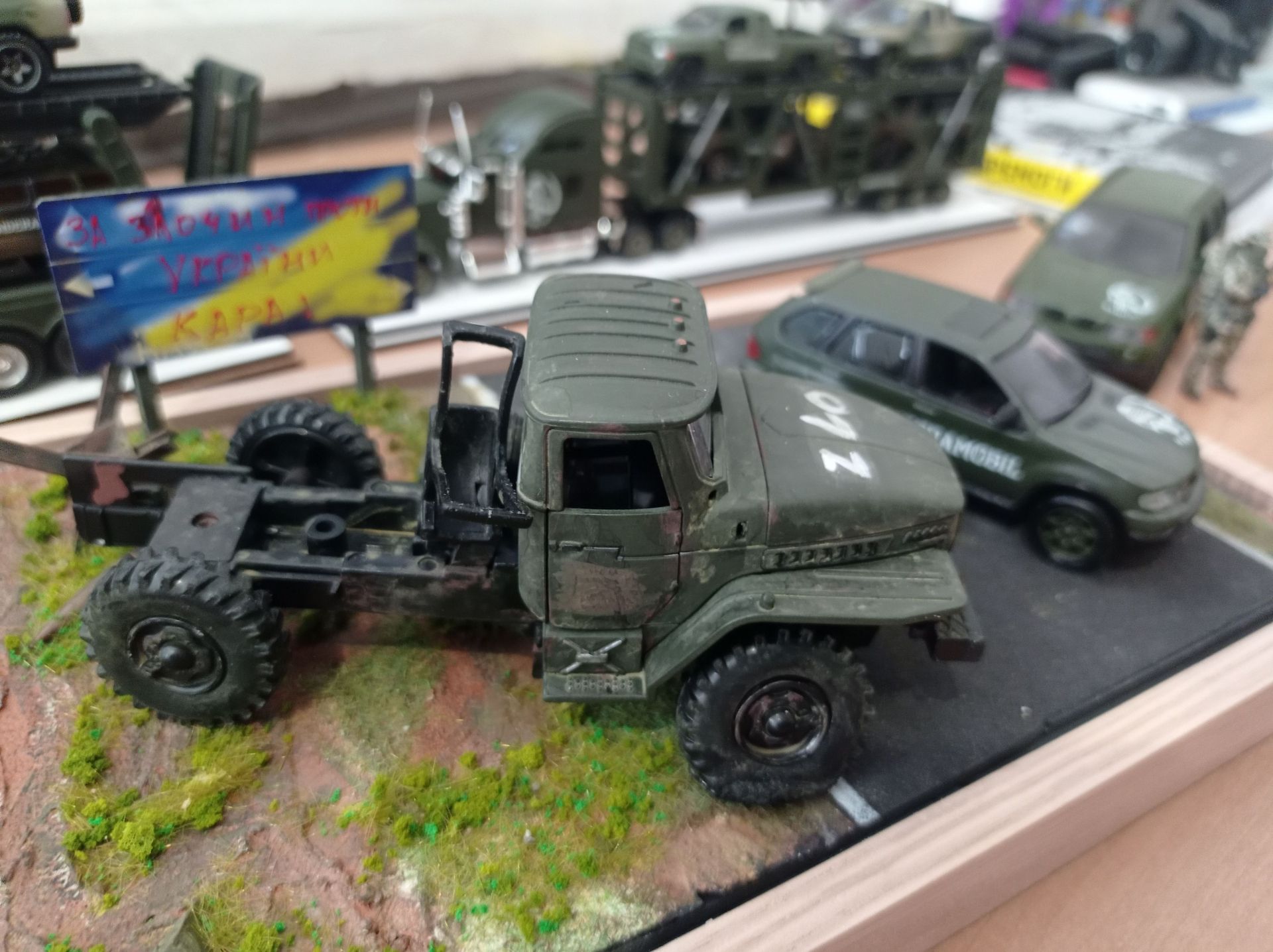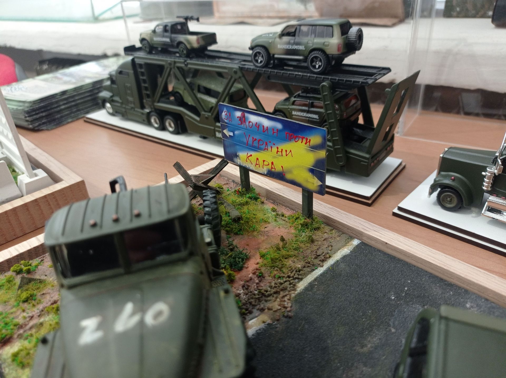 На діорамах можна побачити не лише автівки, а і моделі наших воїнів та залишки техніки окупантів.