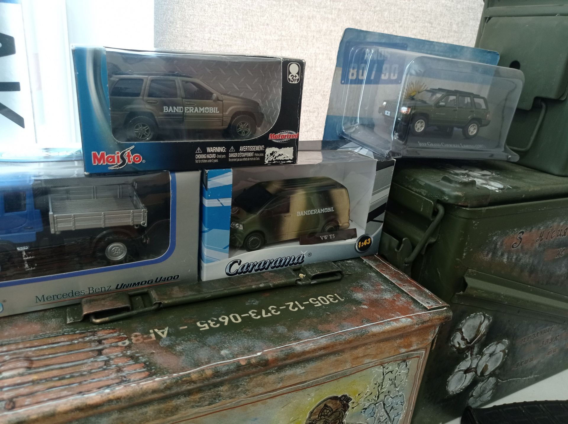 – Ми купуємо масштабні моделі автомобілів. Це моделі таких машин, які ми відправляємо на фронт. Мій друг Анатолій Табас, захоплюється колекціонуванням. Він повністю їх розбирає, тонує вікна, як у справжніх машинах, та фарбує їх у ті ж кольори та тією фарбою, що і справжні бандеромобілі.