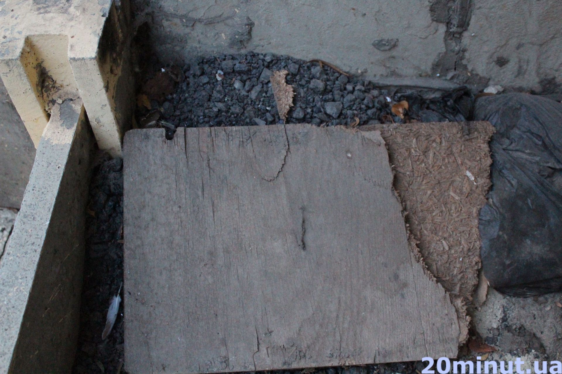Поки людей немає – шукаємо те саме місце. Побачити щось в щілині важко. Через кілька хвили вдається відкрити шматок плитки. Поміж сміттям видніється коричневий згорток – перша закладка є.