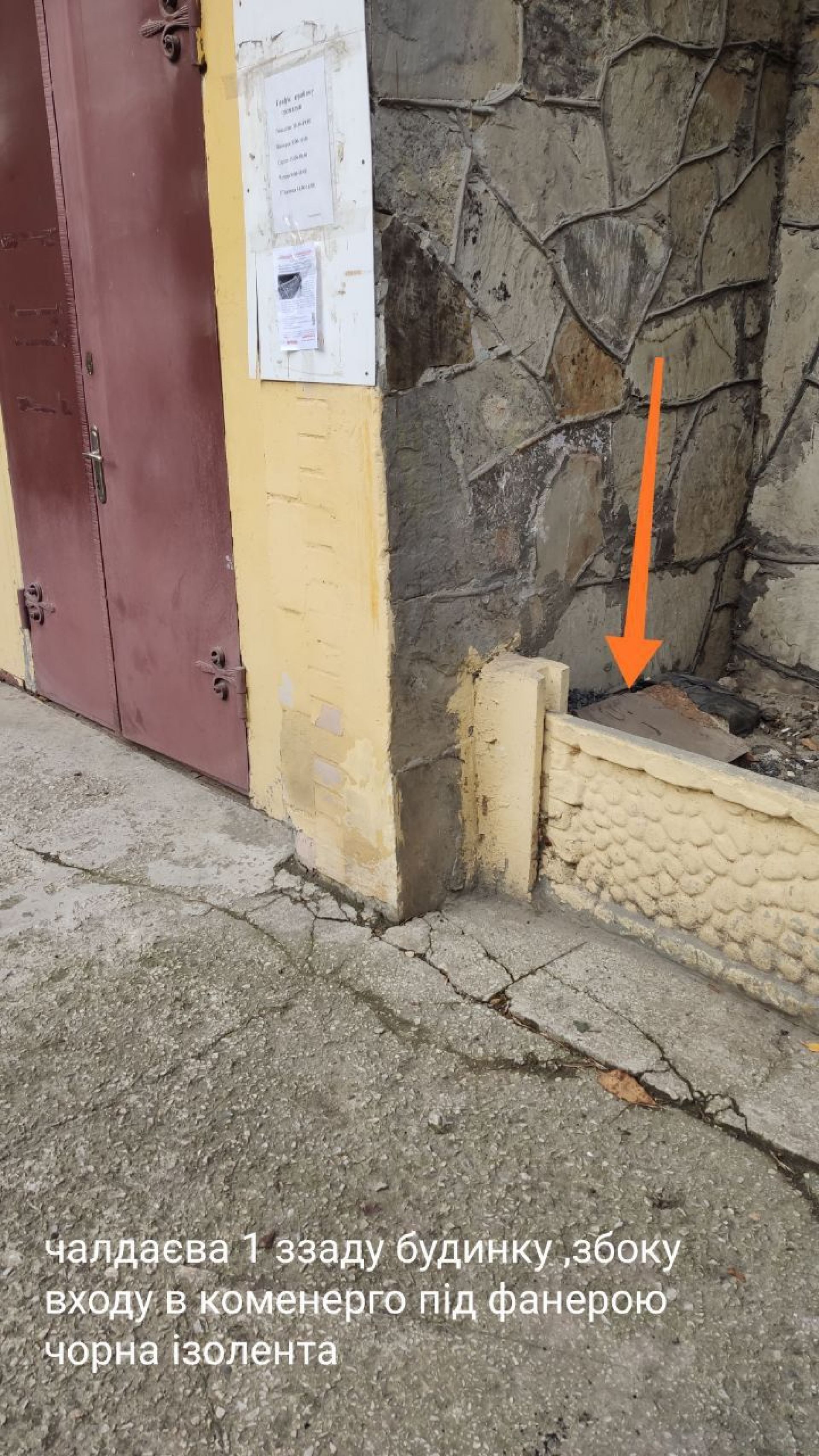 Найближче місце з закладкою – біля «Коменерго» на Чалдаєва. Вирушаємо туди. Знаходимо ту саму фанерну дошку, під нею – невелика закладка в чорній ізоленті. Її було знайти найпростіше. Друга вдала спроба – лишається ще дві.