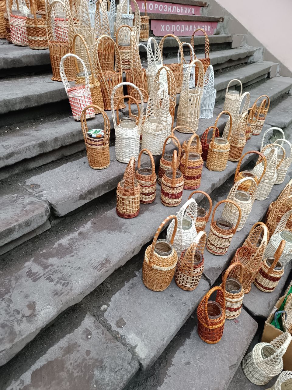 Напередодні свята на Центральному ринку продають різні банки та кошики для освяченої води. Продавці розповідають – такі можна зберігати не один рік. Вони ручної роботи.