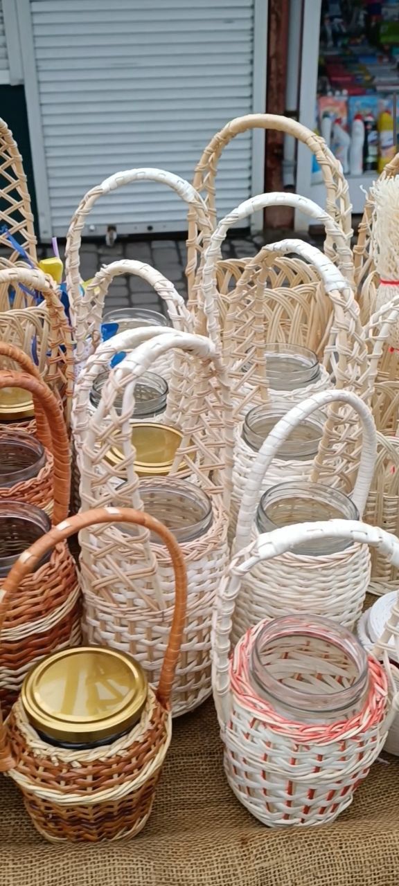 Спеціальні кошики для банок продають від 200 до 300 гривень. Є як зі звичайної лози, так і прикрашені різними стрічками декором.