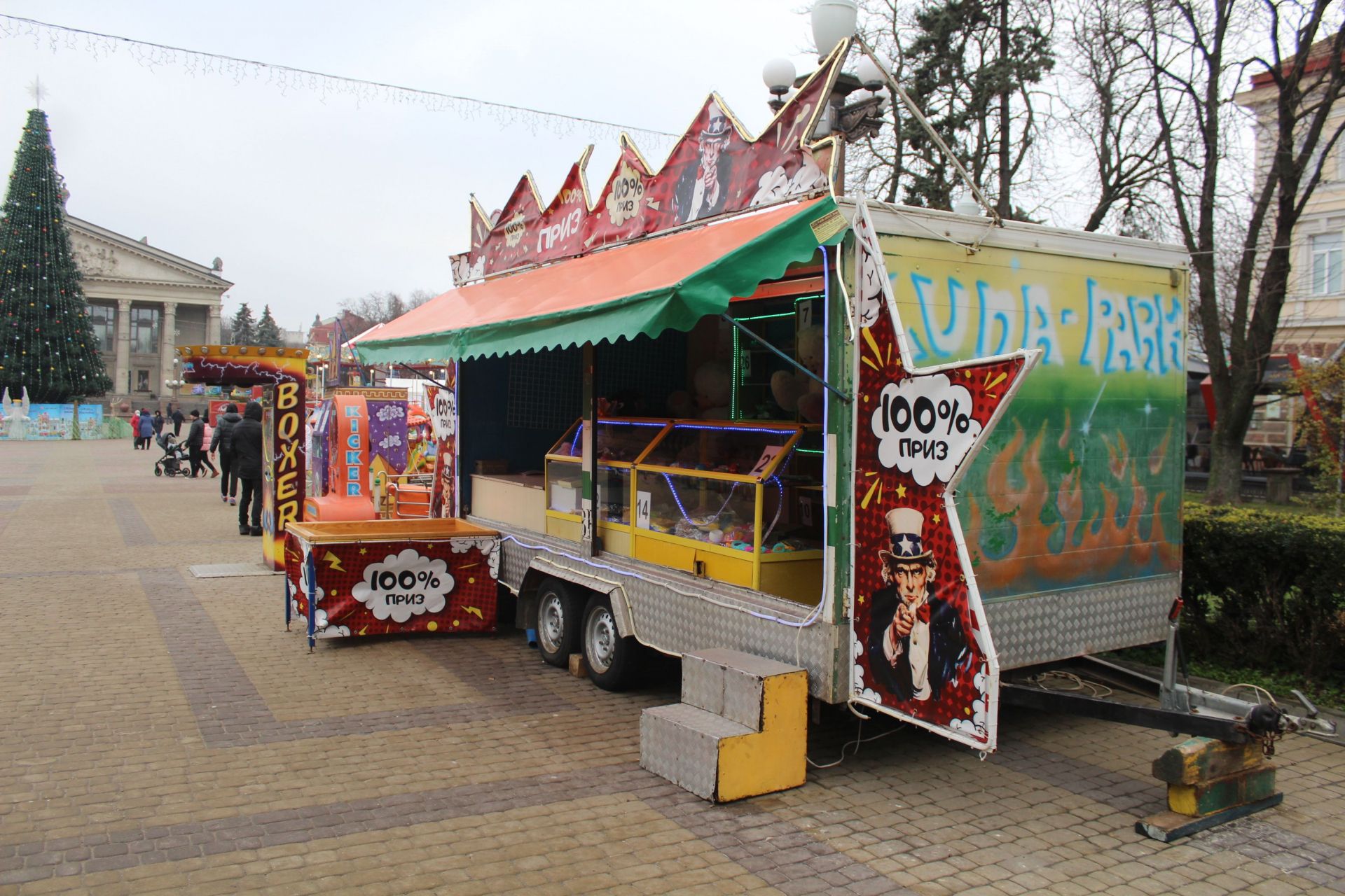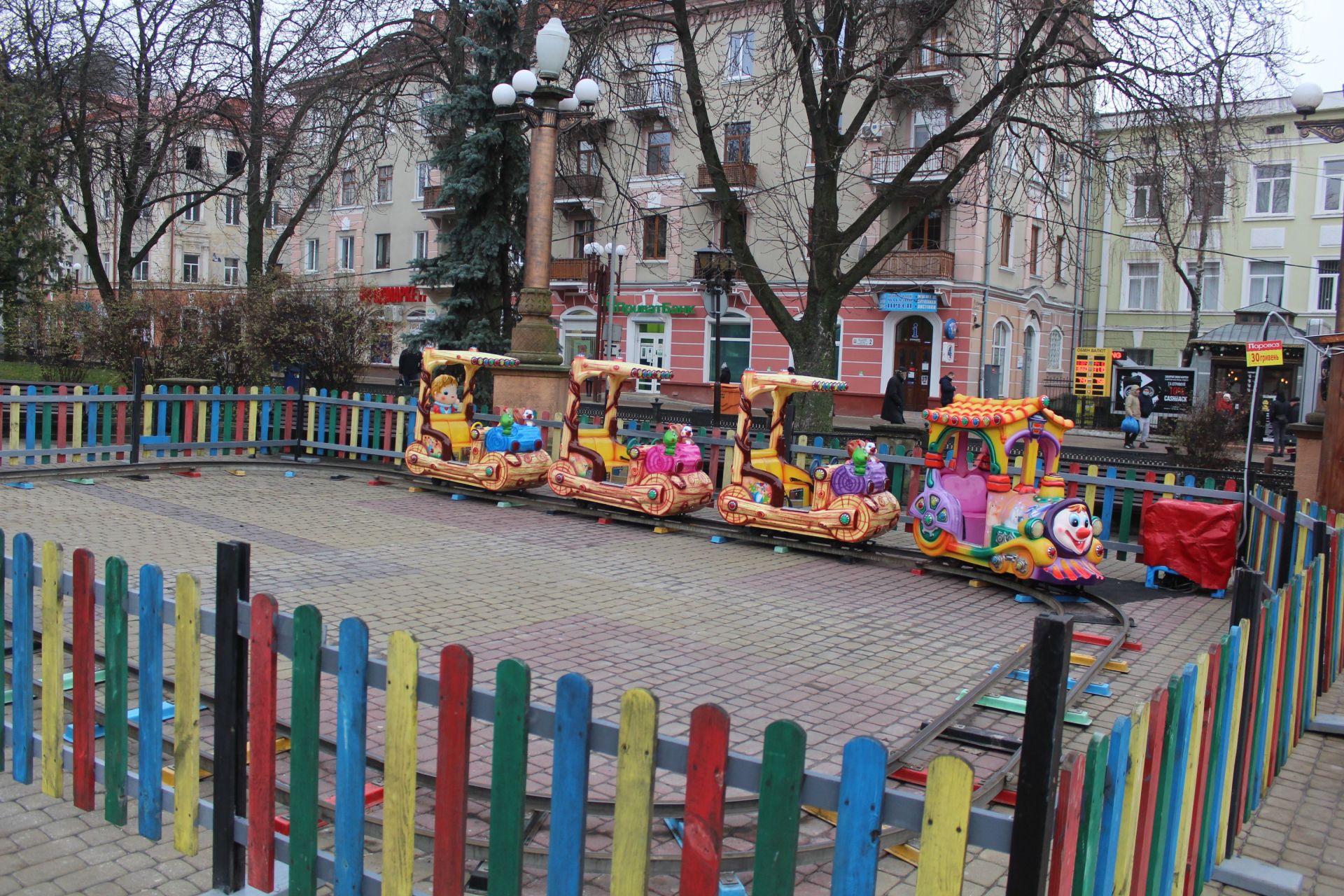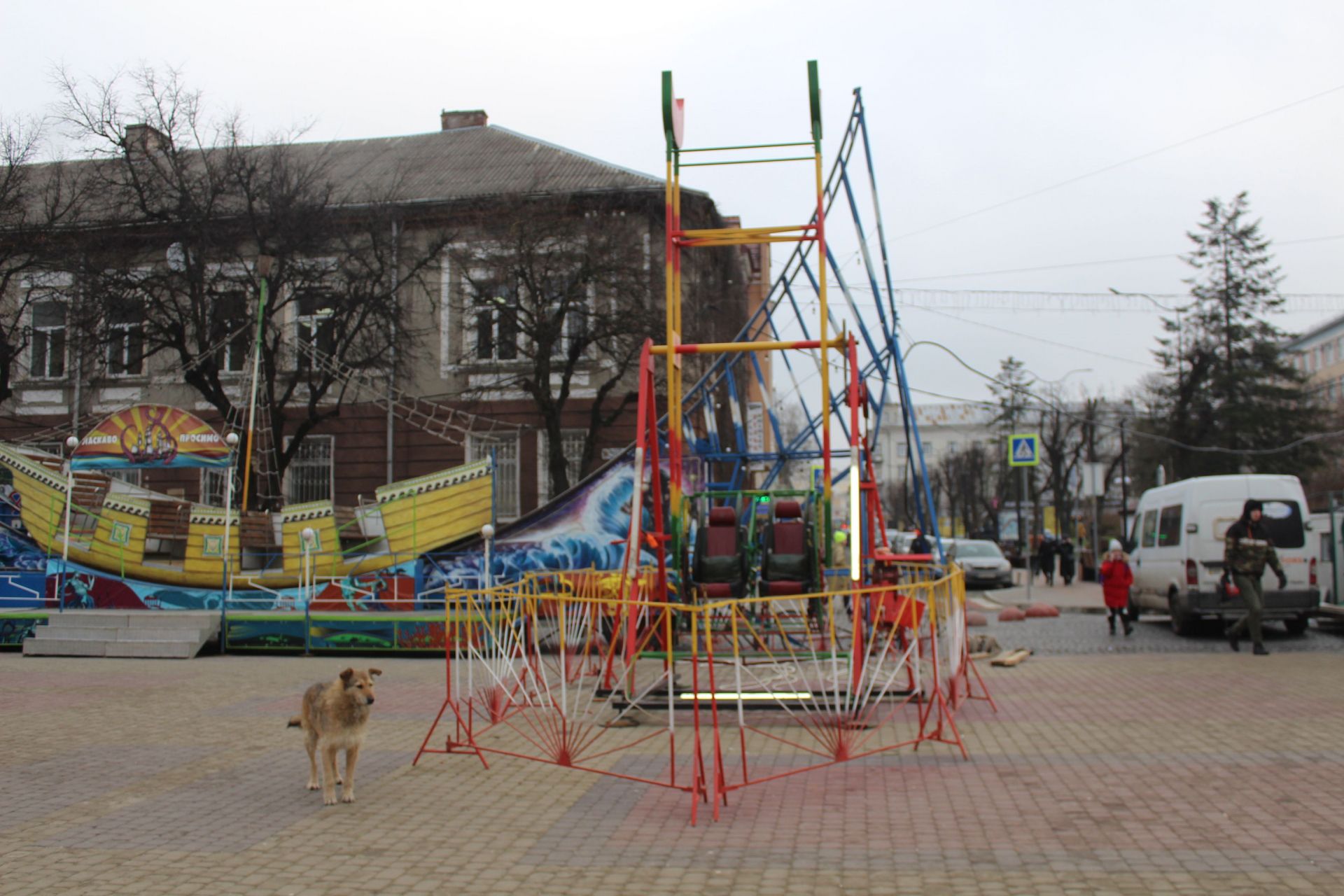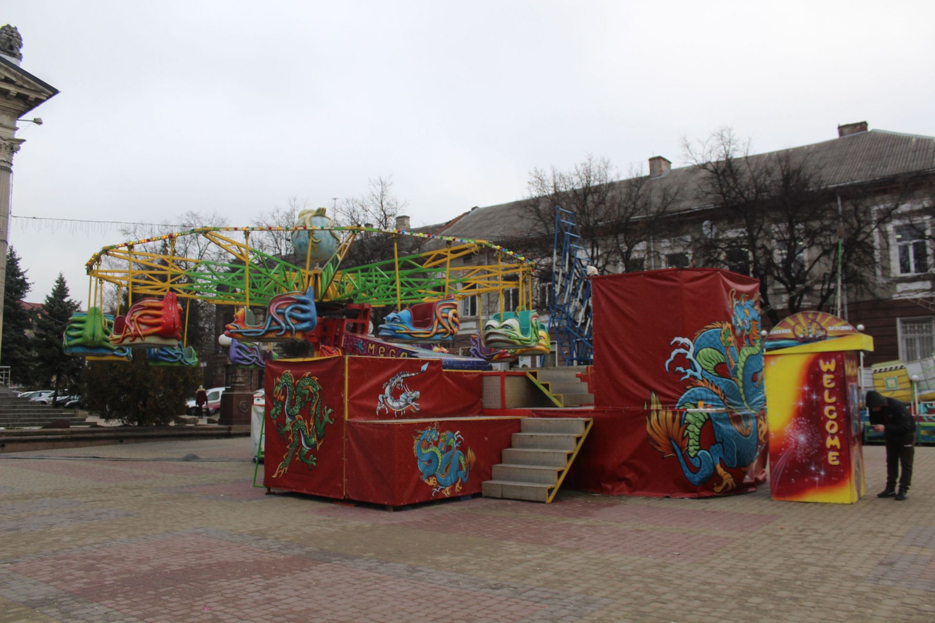 Через те, що на площі немає зимової ярмарки, вона виглядає порожньою. Більшість атракціонів, які були минулого року, повернулися. НЕ встановлювали гірку для сноутюбів. Вона була біля пам’ятника Пушкіну. Як пояснив відповідальний за організацію зимового містечка Тарас Ковальчук – від гірки довелося відмовитися, оскільки вона складна в монтажі, до того ж, для її встановлення потрібно багато часу.