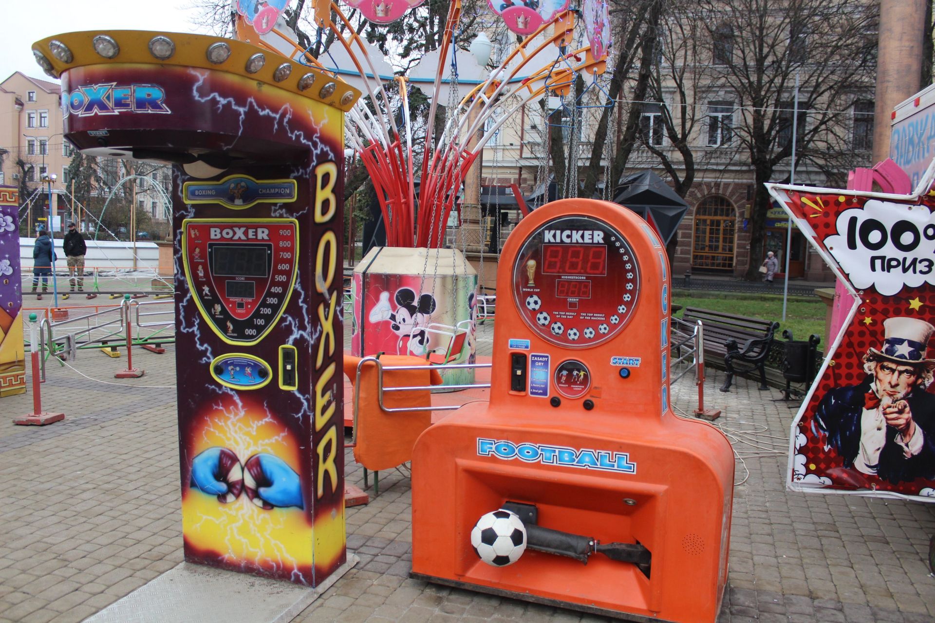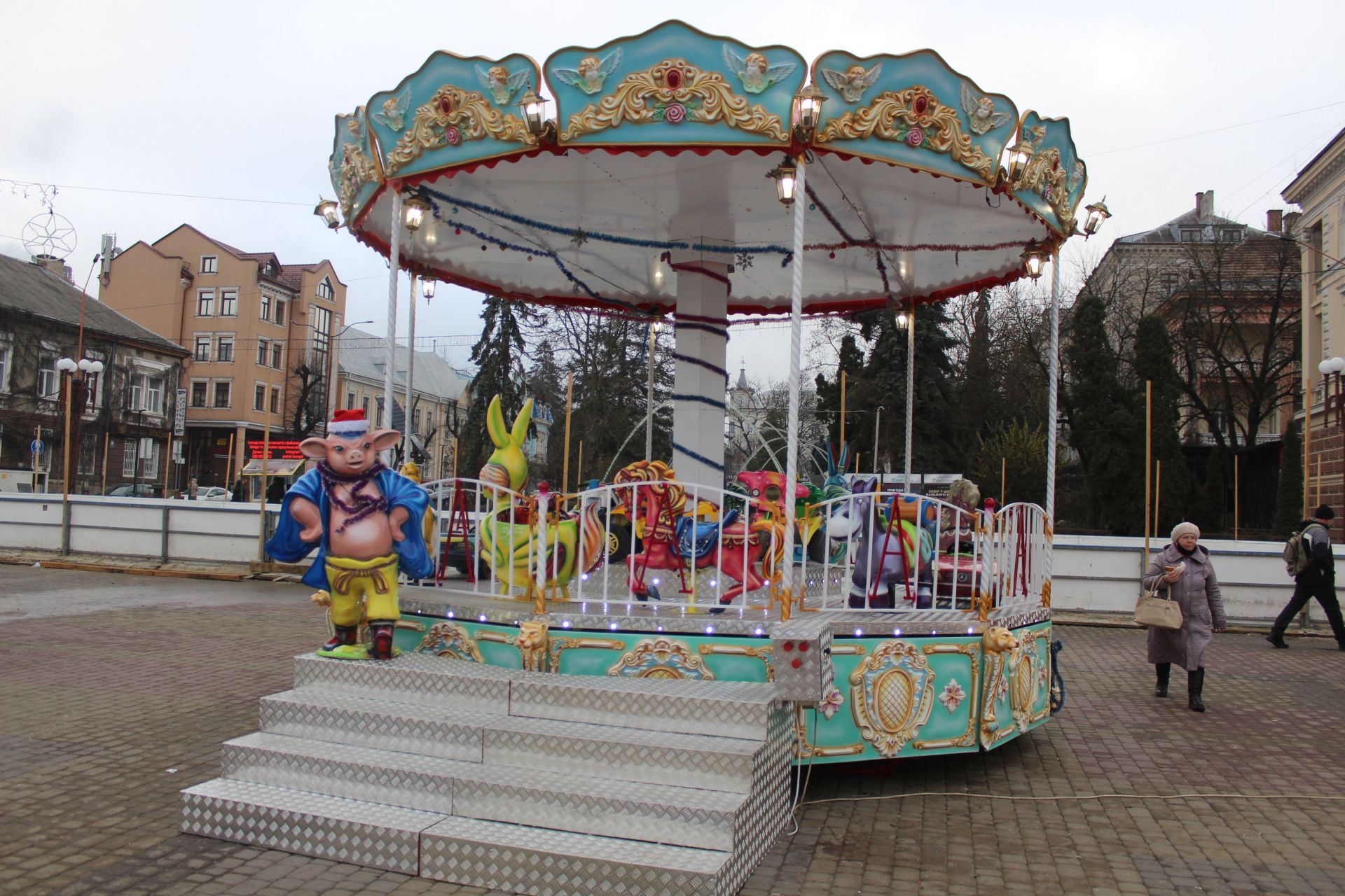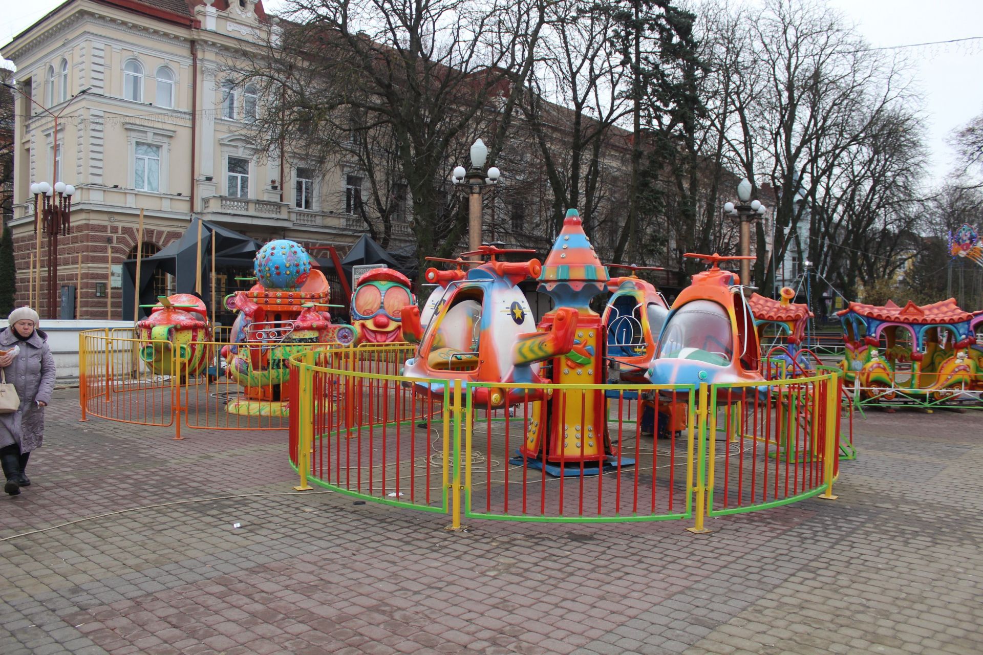 Окрім головної ялинки та різдвяної шопки, на території зимового містечка встановили атракціони. Є як для малечі, так і для дорослих.