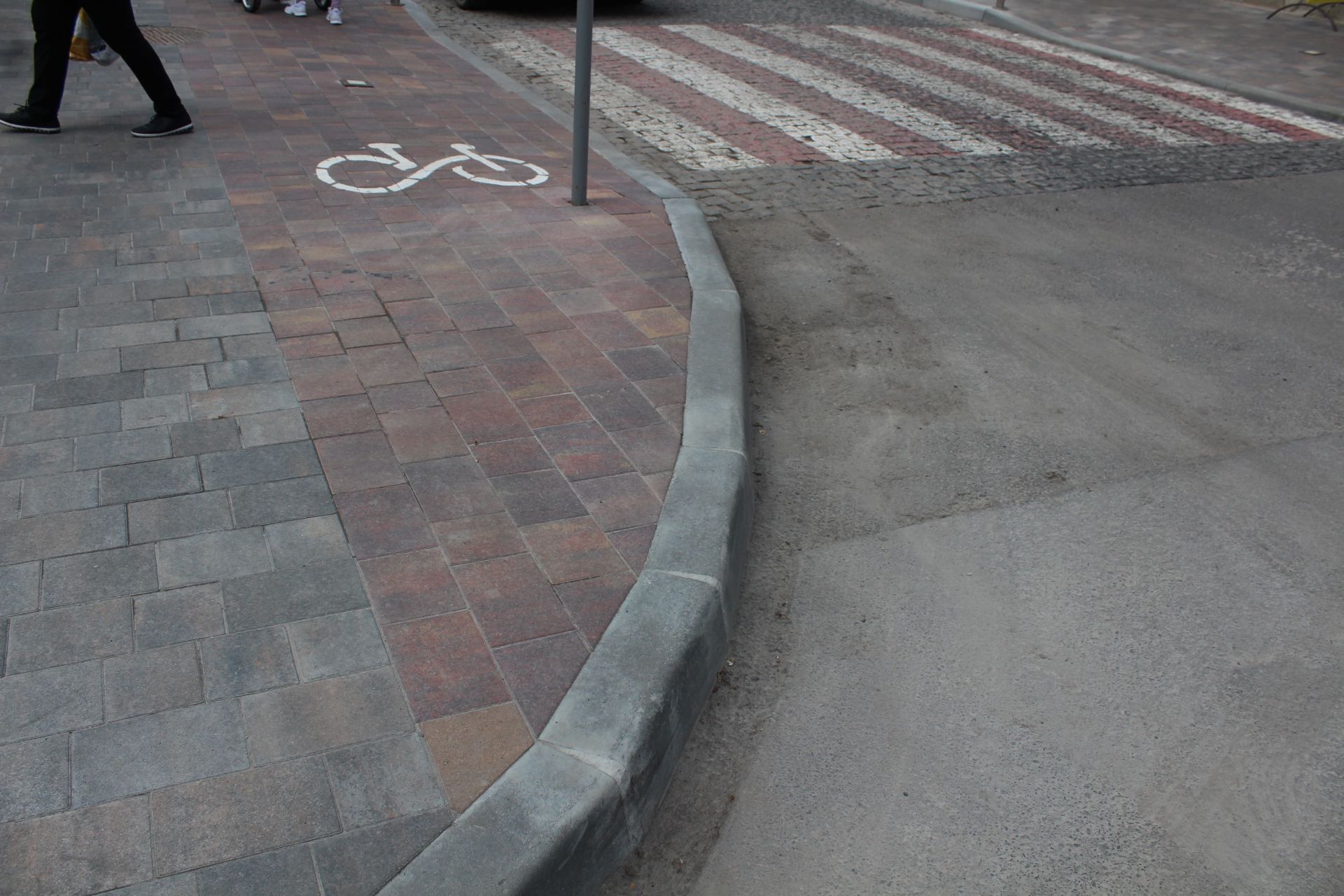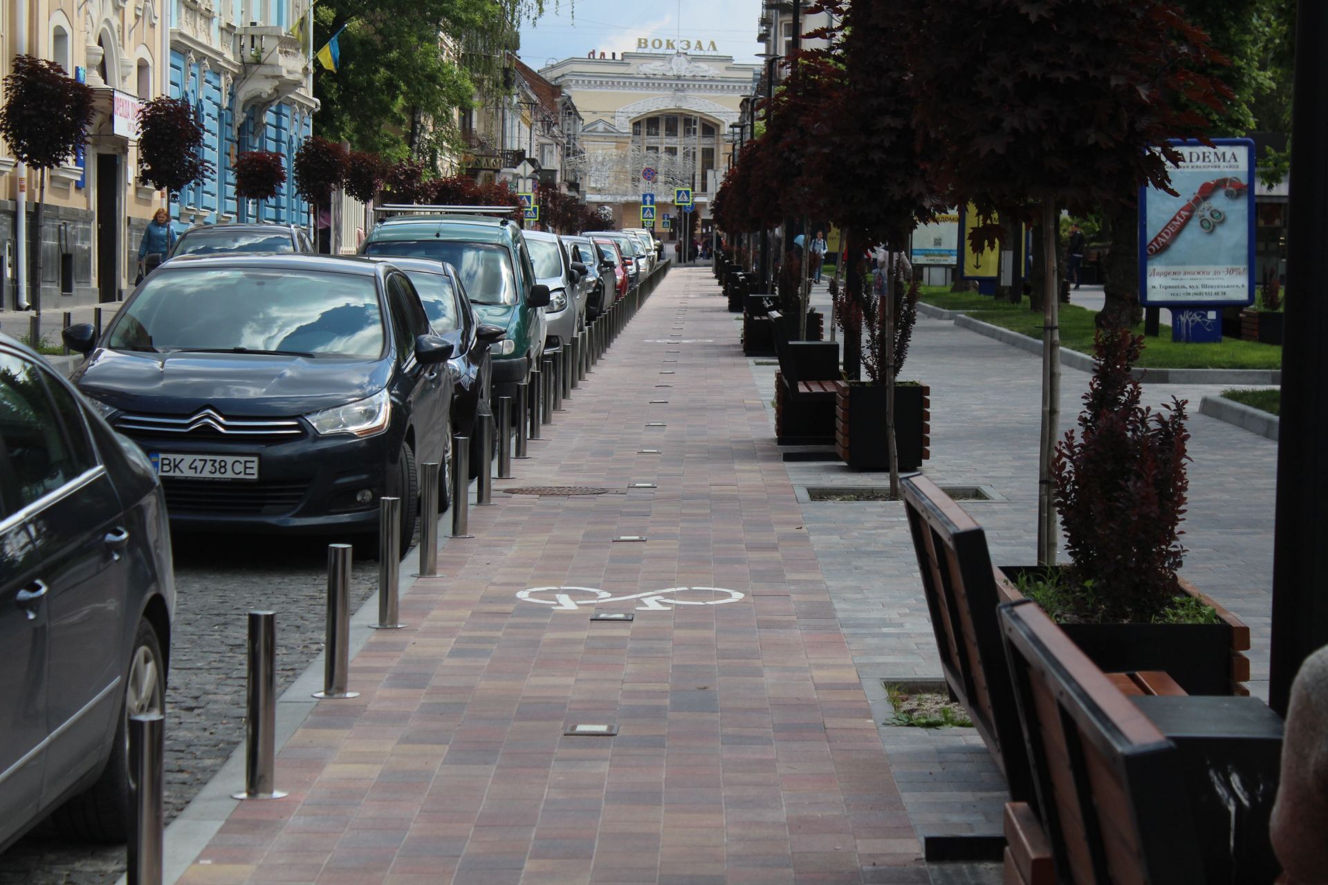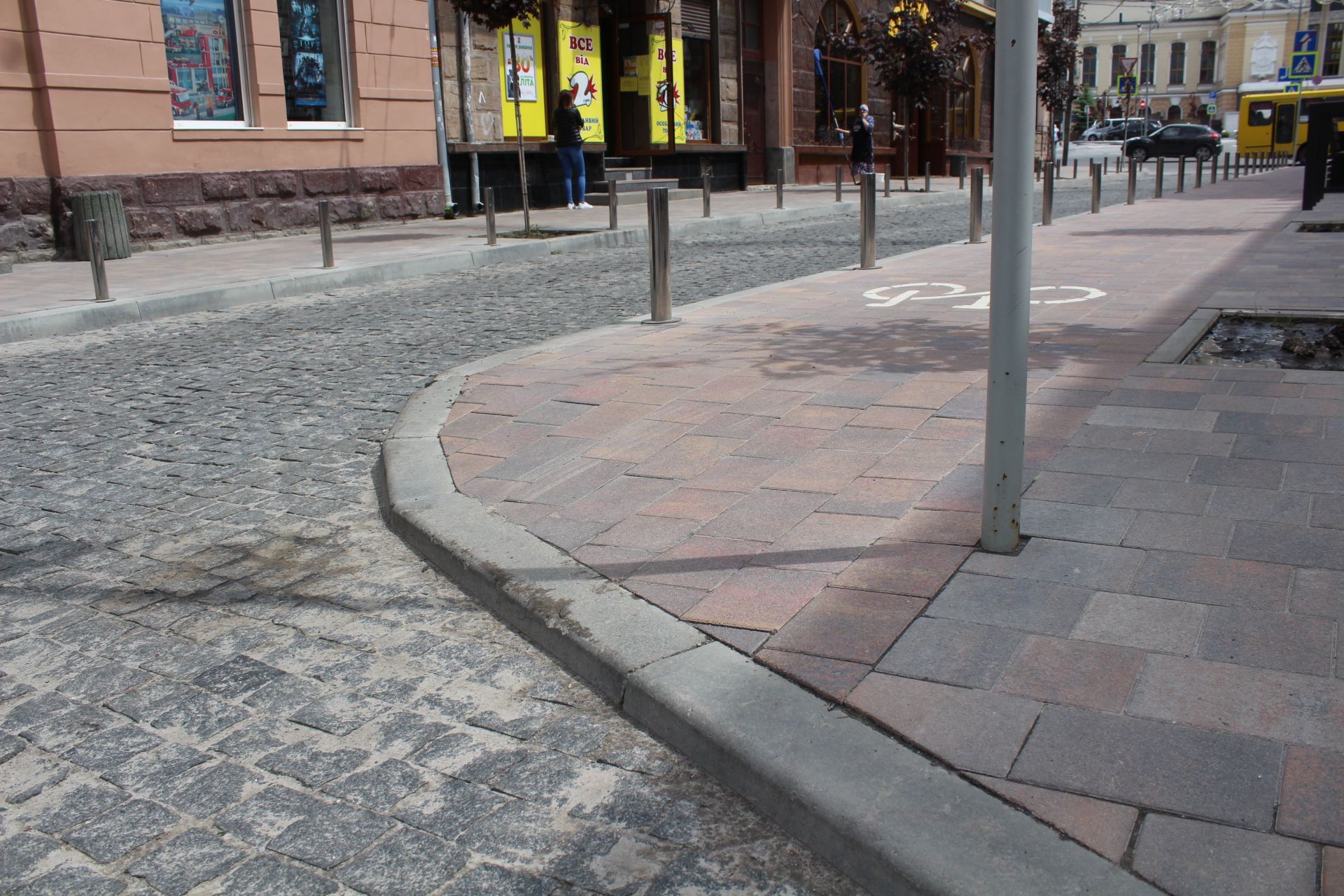 На вулиці В’ячеслава Чорновола є нова велодоріжка. Там є розмітка, відповідні знаки. До того ж, лавки встановили таким чином, щоб люди не ходили по доріжці. Однак це не зупиняє деяких пішоходів. На велосипедистів на перехресті вулиць В’ячеслава Чорновола та Івана Франка чекає несподіванка – різкий перехід з велодоріжки на дорогу. Плавного переходу з тротуару на дорогу немає, тому велосипедистам доводиться призупинятися, обережно спускати та підіймати велосипед і після цього продовжувати рух.