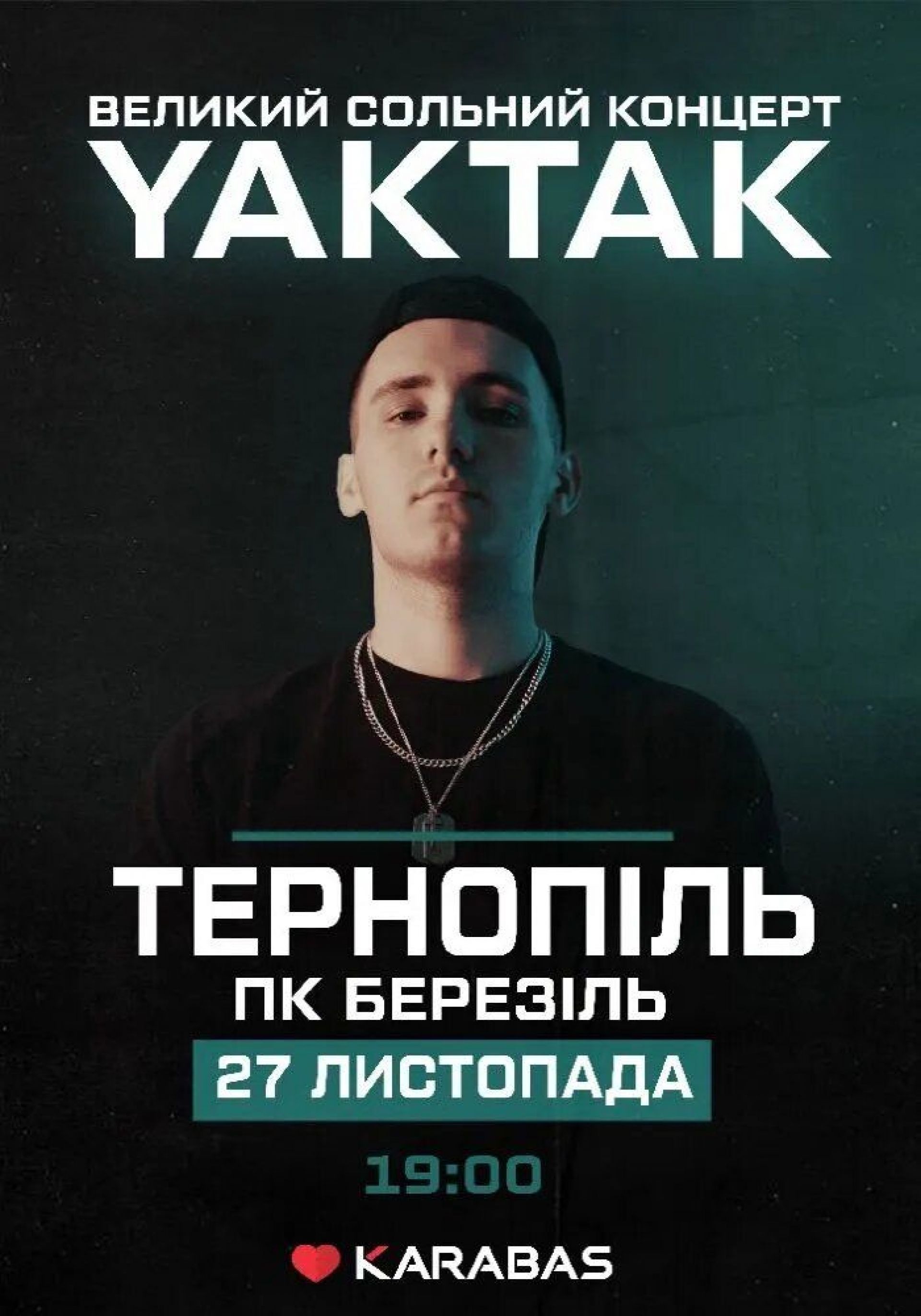 27 листопада, 19:00 — сольний концерт співака YAKTAK