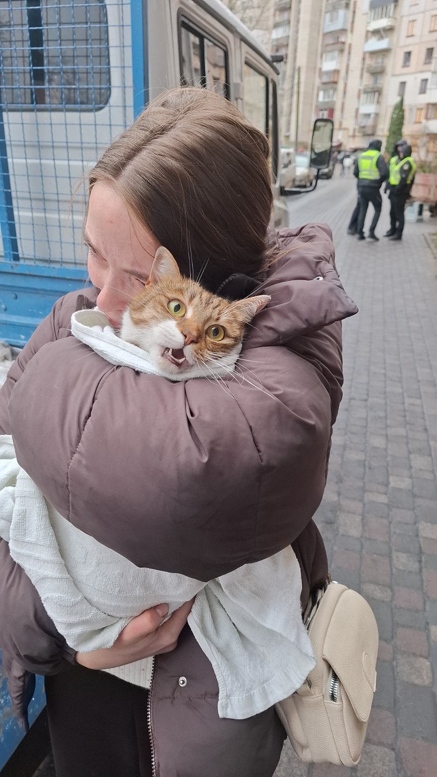 Власниці кицьки подзвонили і сказали, що сусіди зверху знайшли кота. Питали, чи то, бува, не її кішка. Віка через 10 хвилин була біля зруйнованого будинку.