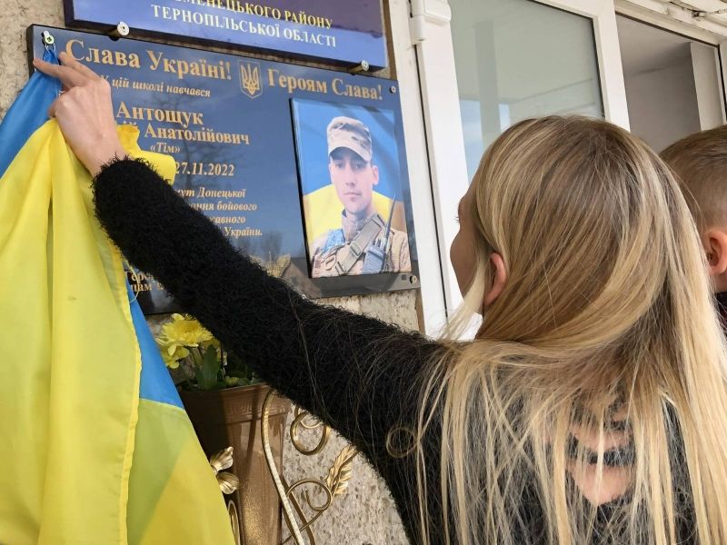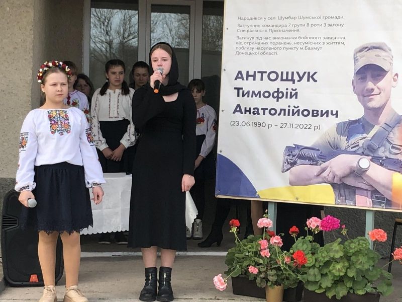 У с. Шумбар відкрили меморіальну дошку загиблому Герою Тимофію Антощуку. Пам’ятний знак встановили на фасаді гімназії, де навчався захисник.