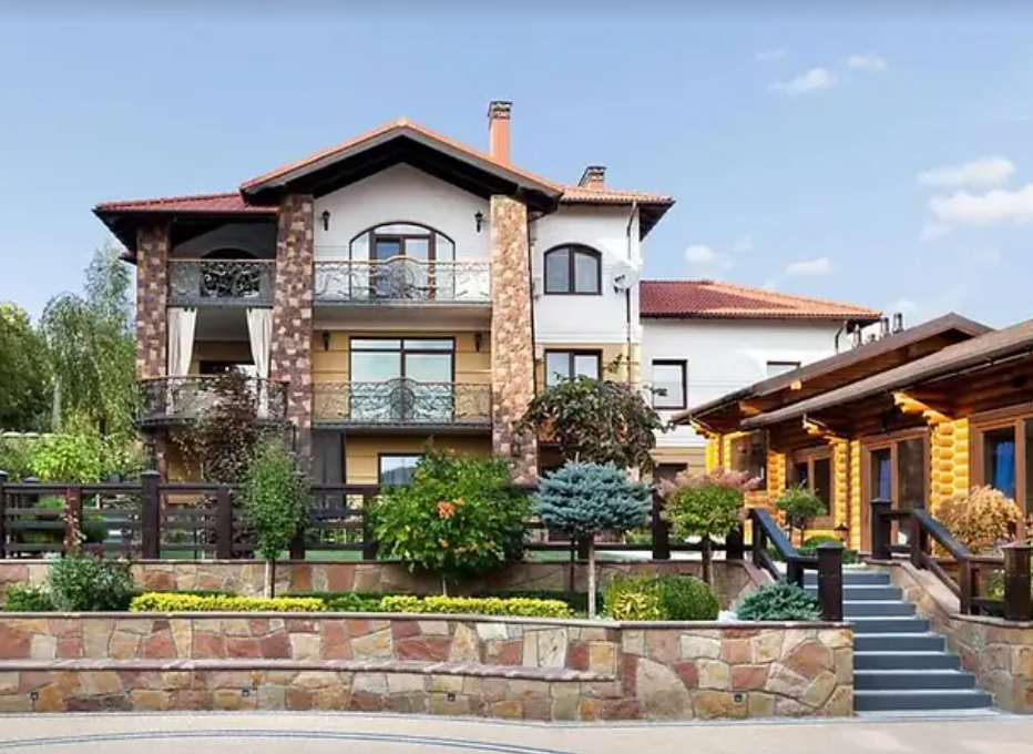 Це найдорожча пропозиція, виставлена на продаж. Це триповерховий цегляний будинок з гаражем на два автомобілі.Також є відпочинковий будинок з басейном, сауною, кімнатою відпочинку з кухнею. На всіх спорудах та на території охорона та відеоспостереження. Також на території є сад.