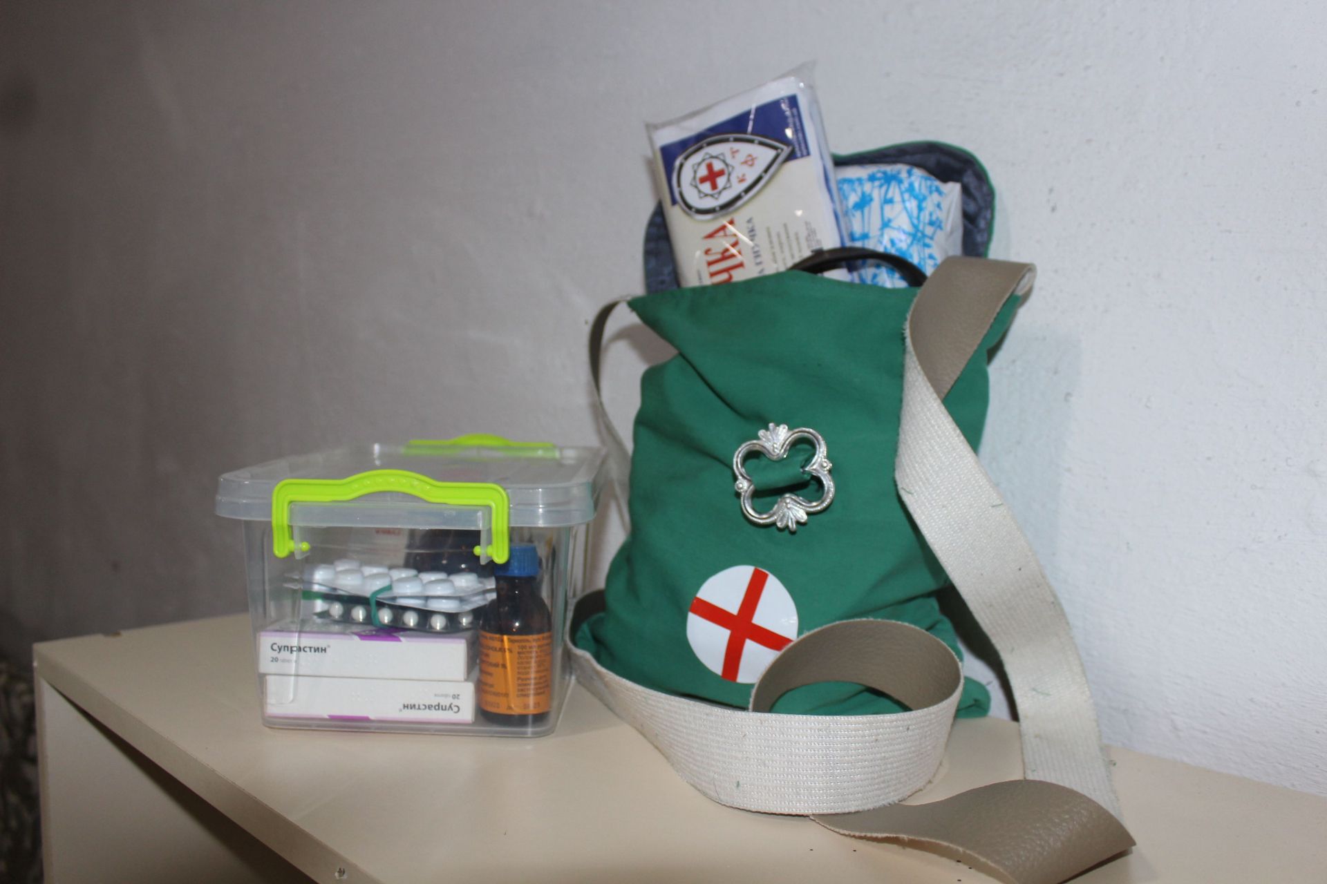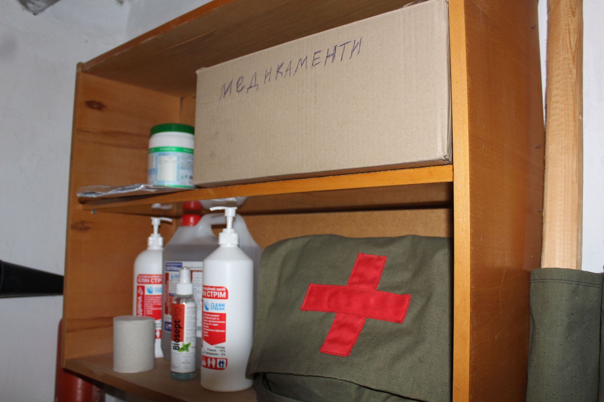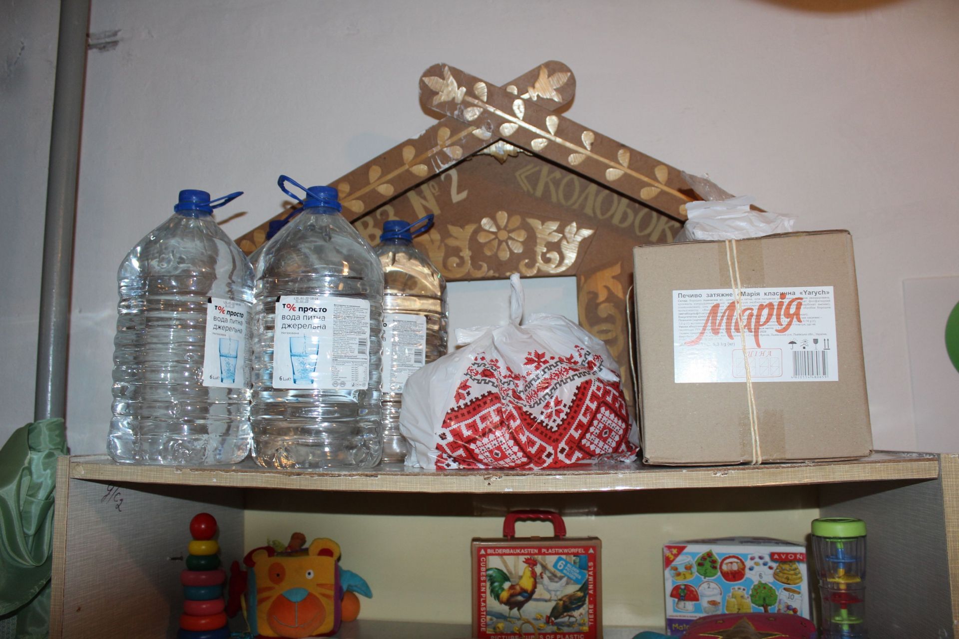 У кожній кімнаті встановили п’ятилітрові пляшки з водою, пластикові стаканчики та набір печива. Також наявна аптечка, що дозволяє надати дитині першу домедичну допомогу. Під час тривоги вихователі мають спустити до укриття тривожні сумки, де наявні списки дітей, контактні телефони батьків та базові теплі речі.