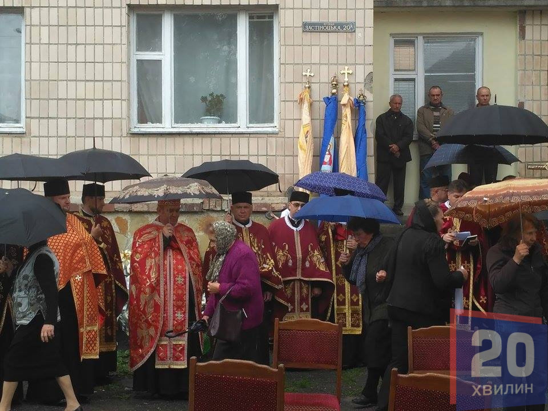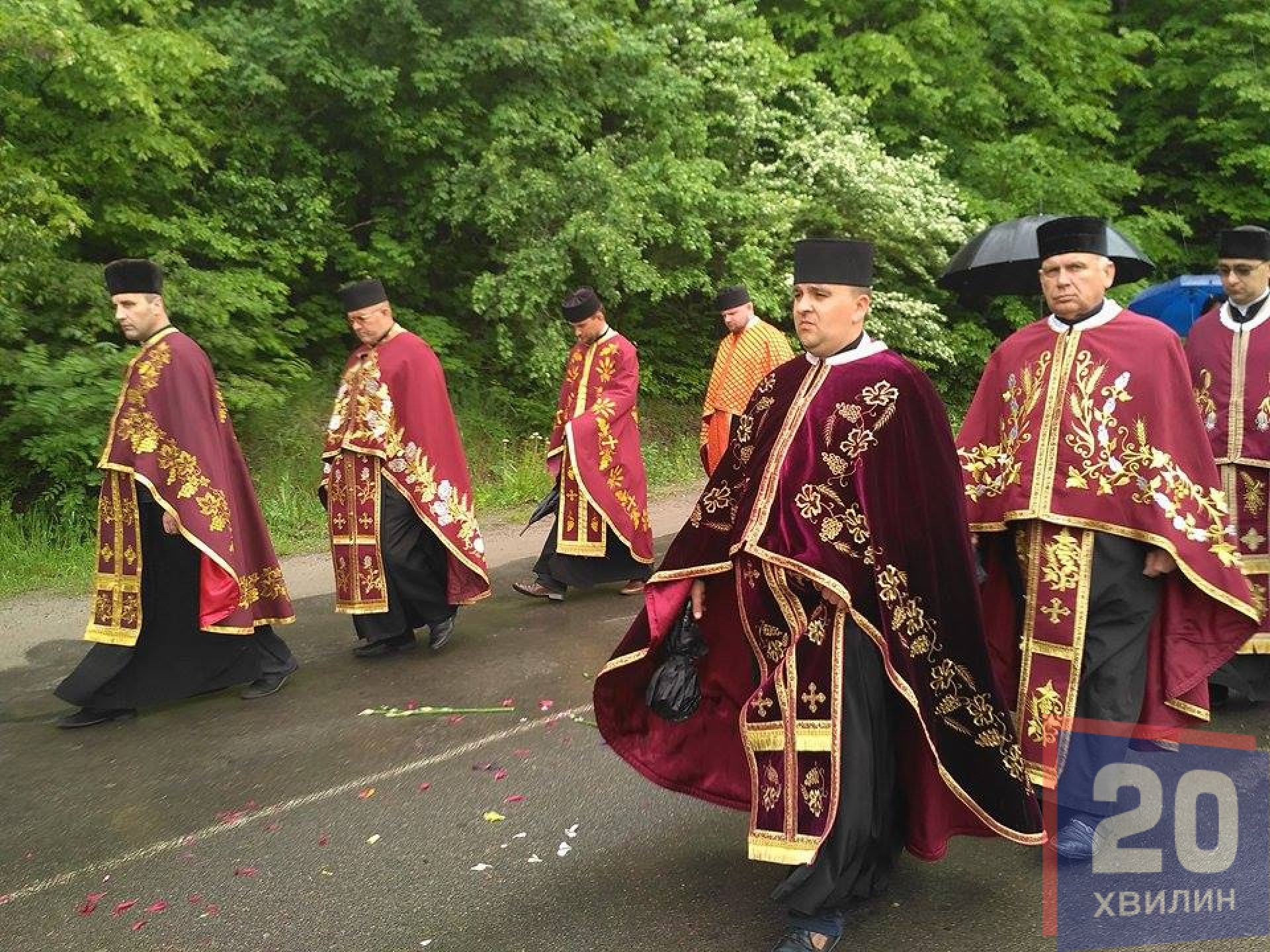 Від гуртожитку, де проживав Богдан з батьками, колона вирушила в бік церкви. Місцеві школярі встеляють дорогу живими квітами.
