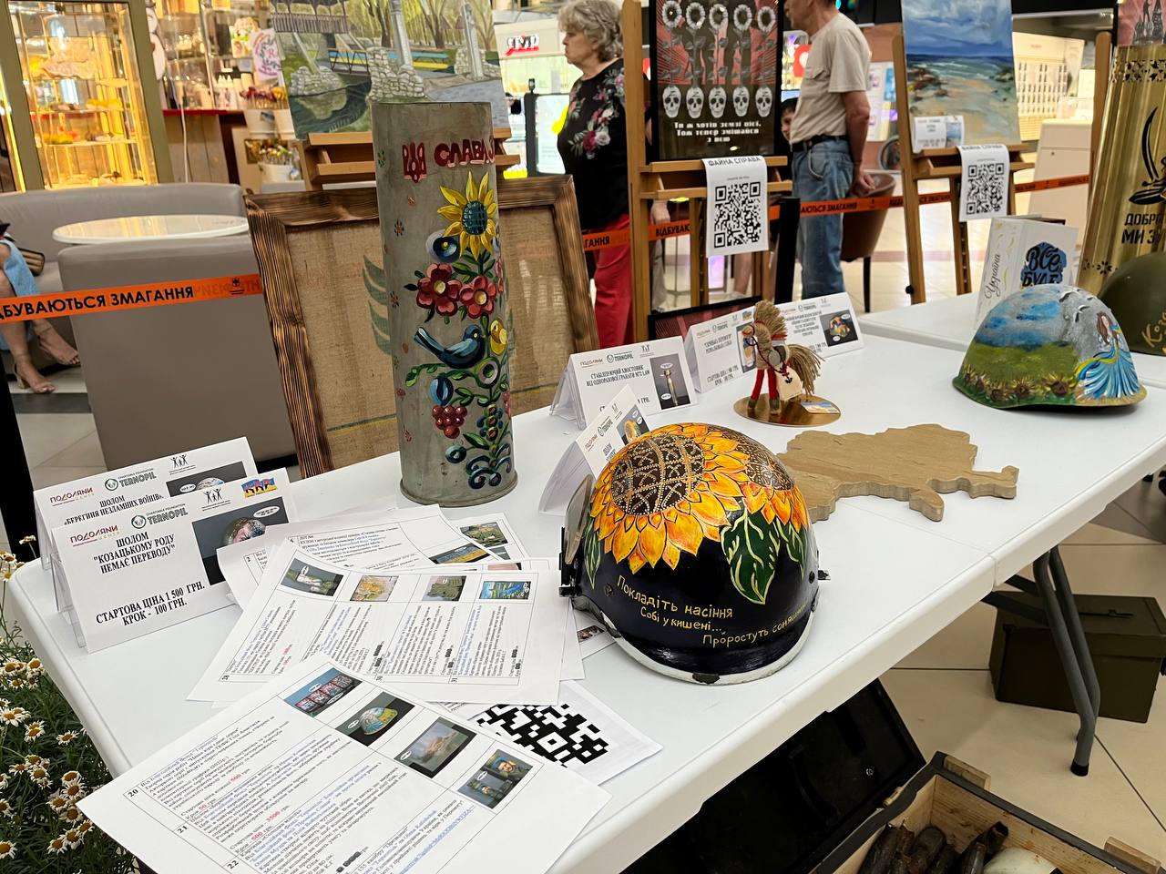 Кам’яну карту Україну продавали за 2500 гривень, а кофту з підписом Валерія Залужного за 10 000 гривень. Активно присутні у залі тернополяни купували солом’яних коників, які є оберегом і назвали його «Скачемо до Перемоги».