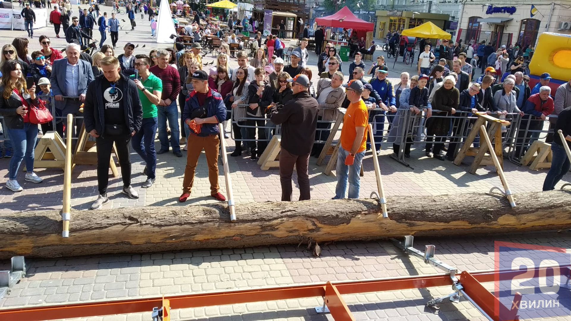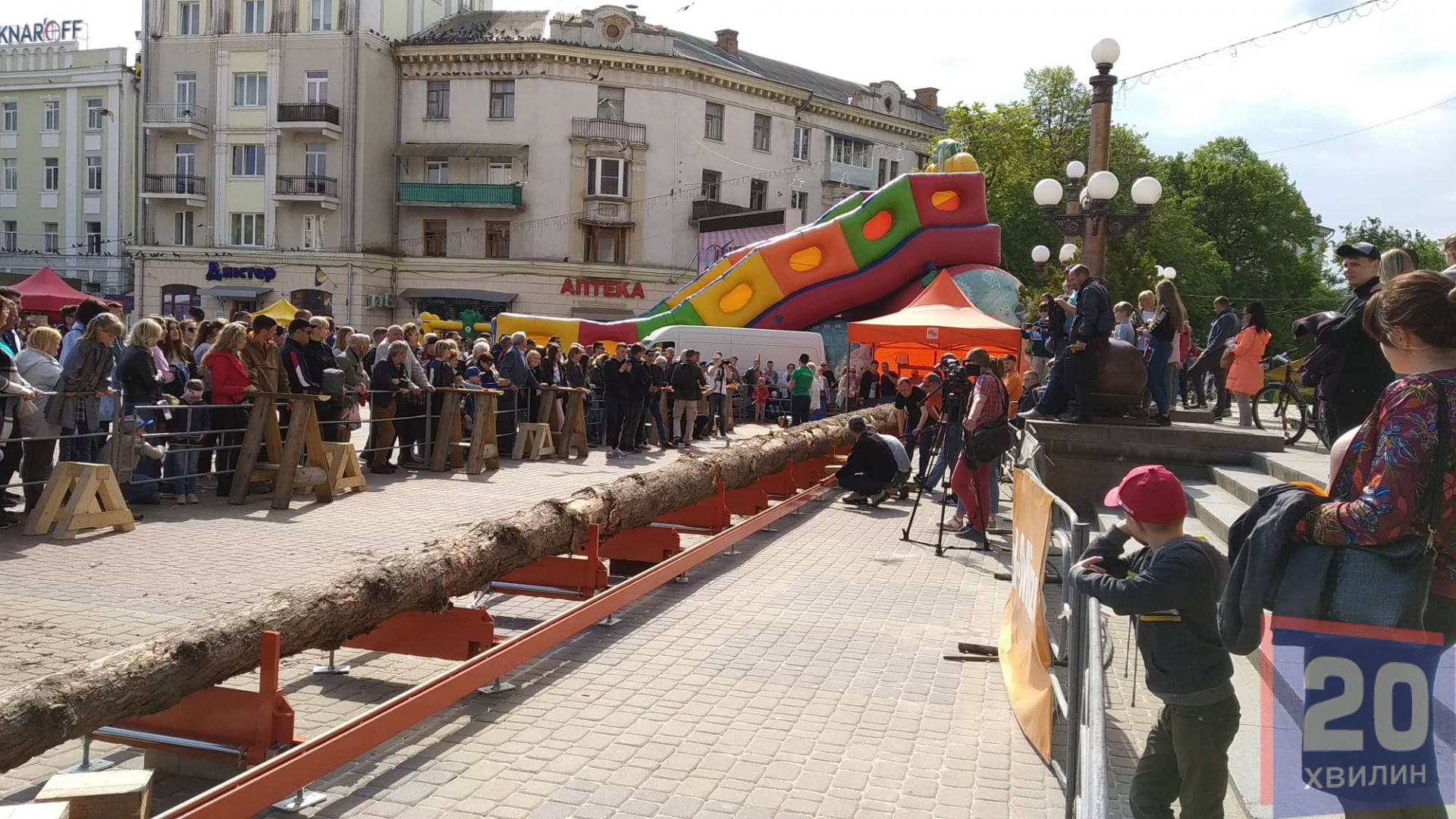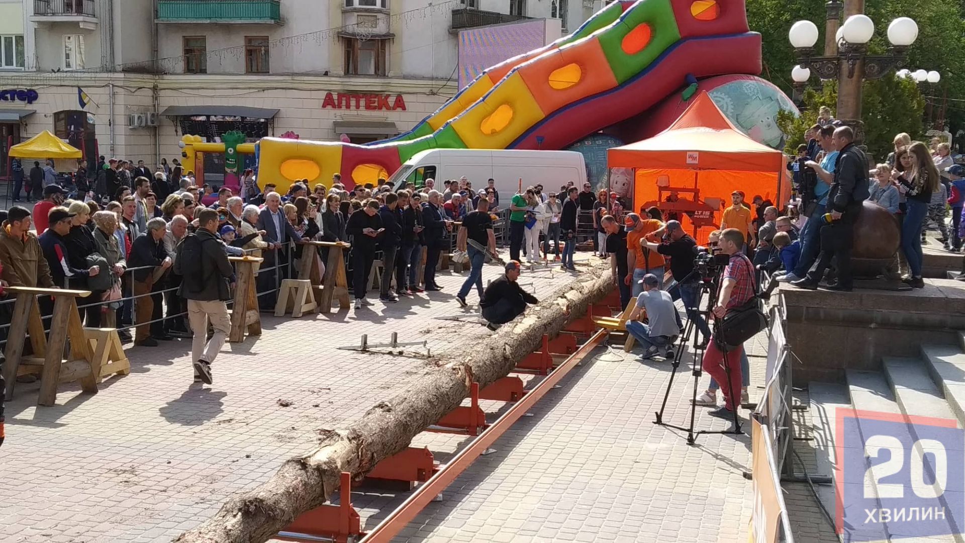 Як встановлюють рекорд, прийшли подивитися чимало тернополян. Спершу модрину пересунули на станок. Допомагали перемістити її 13 глядачів. Усе дійство відбувалося під супроводом ведучих.