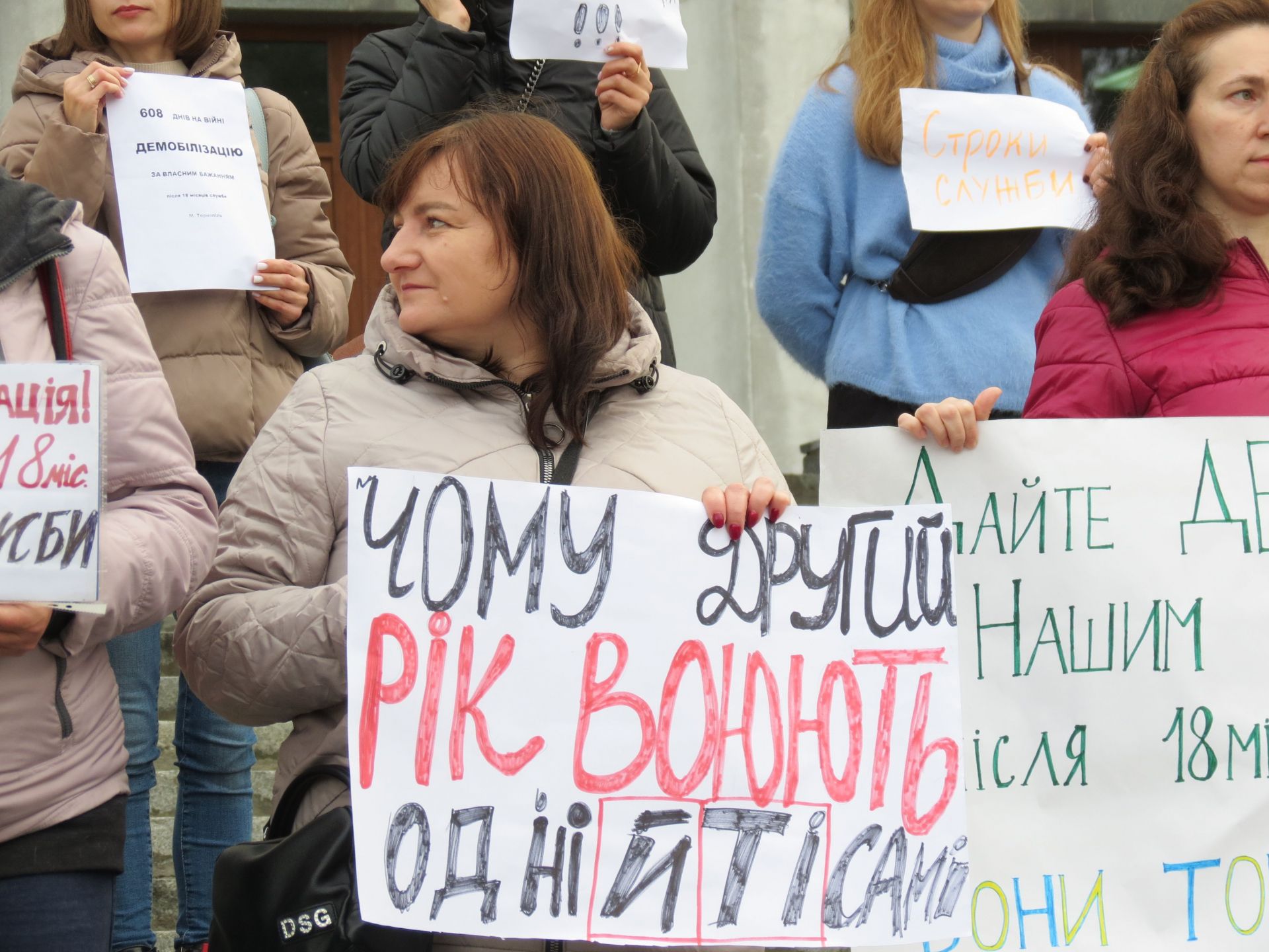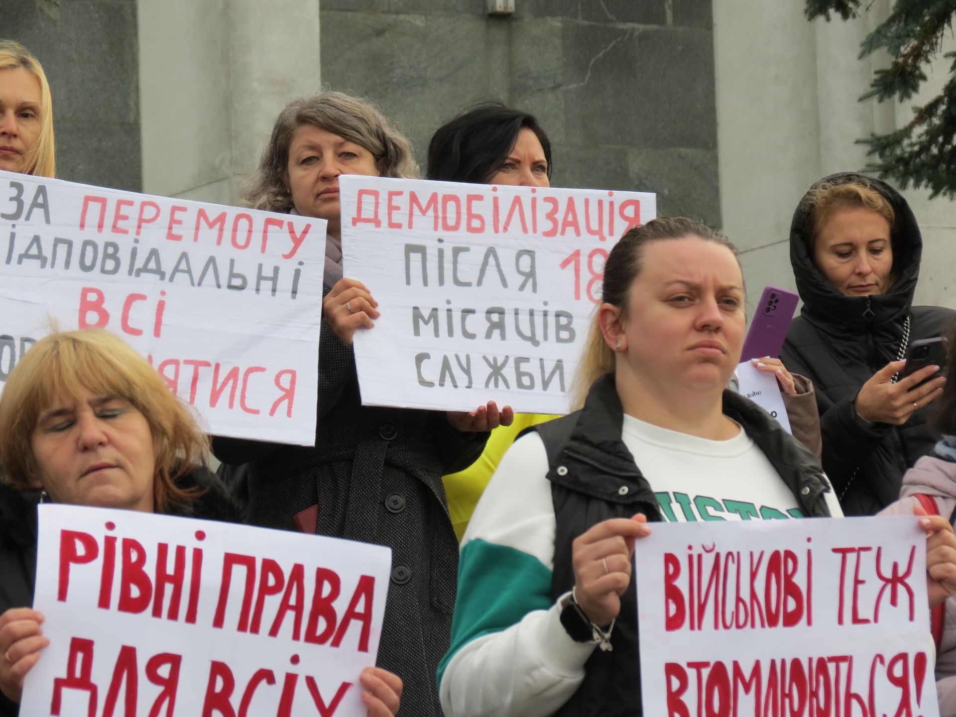 Організаторки пікету вимагають від влади встановити чіткі терміни перебування на передовій та провести демобілізацію за бажанням військових, які перебувають на фронті від початку повномасштабної війни. Свої звернення направлять президенту, прем’єр-міністру, спікеру Верховної Ради.