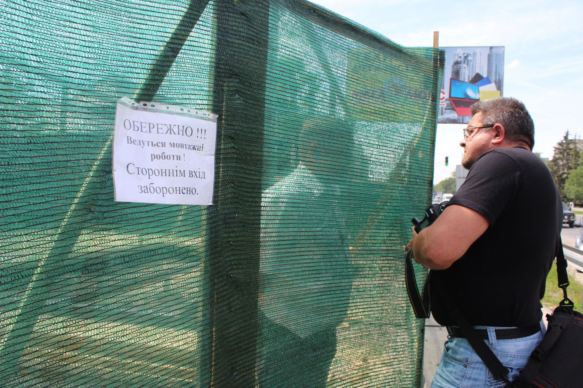 На запитання чому чоловік зайшов за огорожу, він відповідає, що таким чином висловлює свій протест проти будови цих тимчасових споруд.